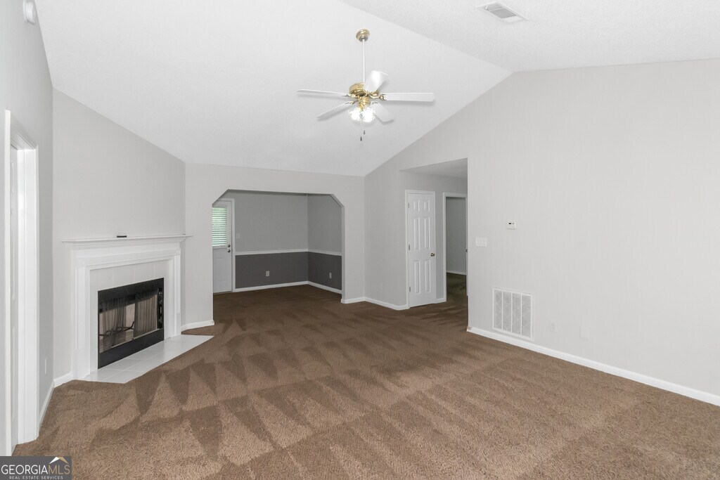 This is a lovely 3-bedroom, 2-bathroom ranch-style home situated in the Gleason Meadows Subdivision. It features a covered porch at the front and a spacious backyard. Inside, the living area is large and inviting, with a vaulted ceiling, ceiling fan, light fixtures, and a cozy wood-burning fireplace. The dining area flows into the kitchen, which boasts attractive black appliances, oak cabinets and ample storage space. Beyond the kitchen, there's a generously sized family room or den, leading to the laundry area and the 2-car garage. The master bedroom includes a walk-in closet and a beautiful bathroom with a garden tub, separate shower, and oak vanity. Plenty of yard space surrounds the property. Conveniently located in Henry County, close to shopping amenities. We are not accepting housing vouchers at this time.