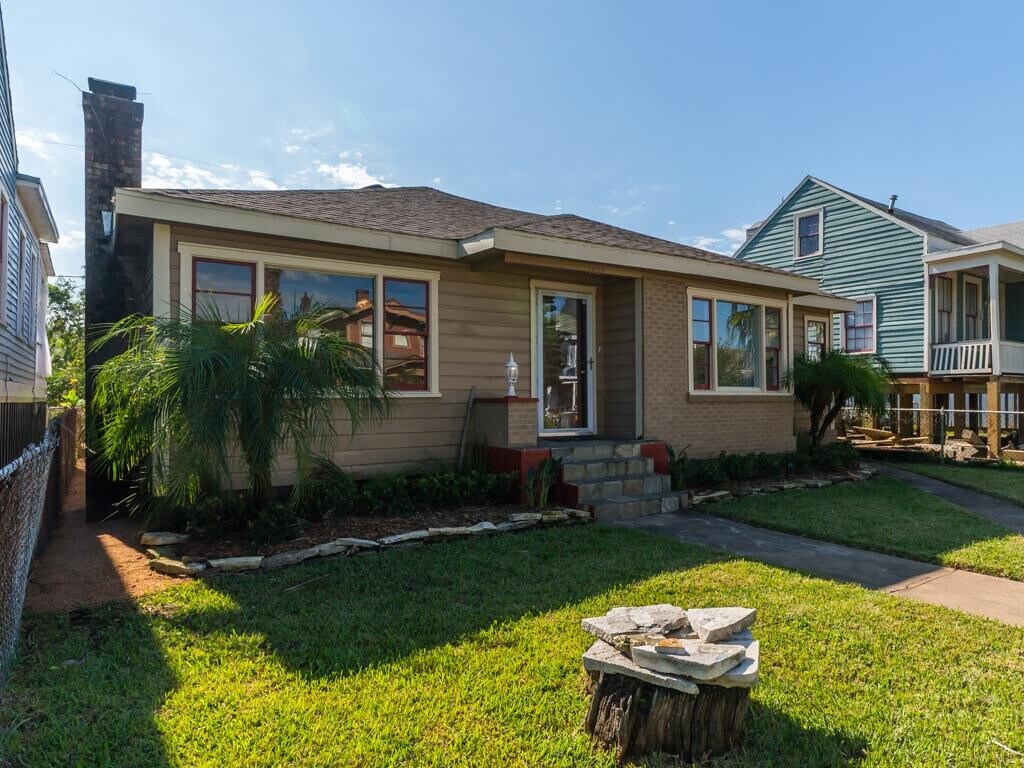 Adorable 3/2/1 bungalow home with recent interior paint and decorative blinds. Beautiful hardwood and tiled floors. Kitchen with granite counter and appliances including refrigerator. Spacious living area with fireplace and bookcases. Includes washer and dryer. Front and back yard is fenced with access to garage. Walking distance to UTMB,beach and all the 14th street restaurants. MLS# 47831769