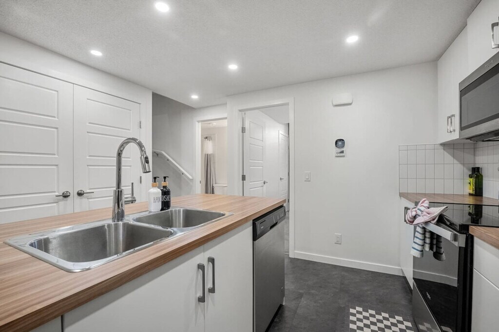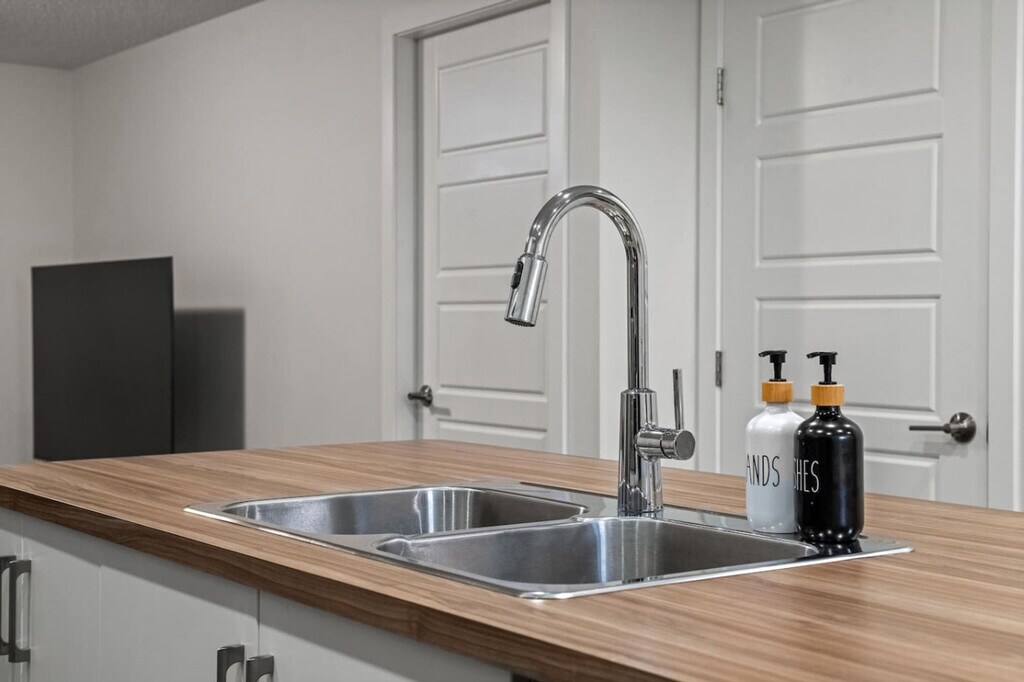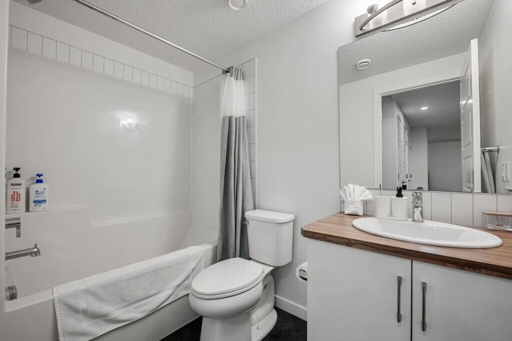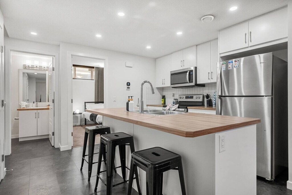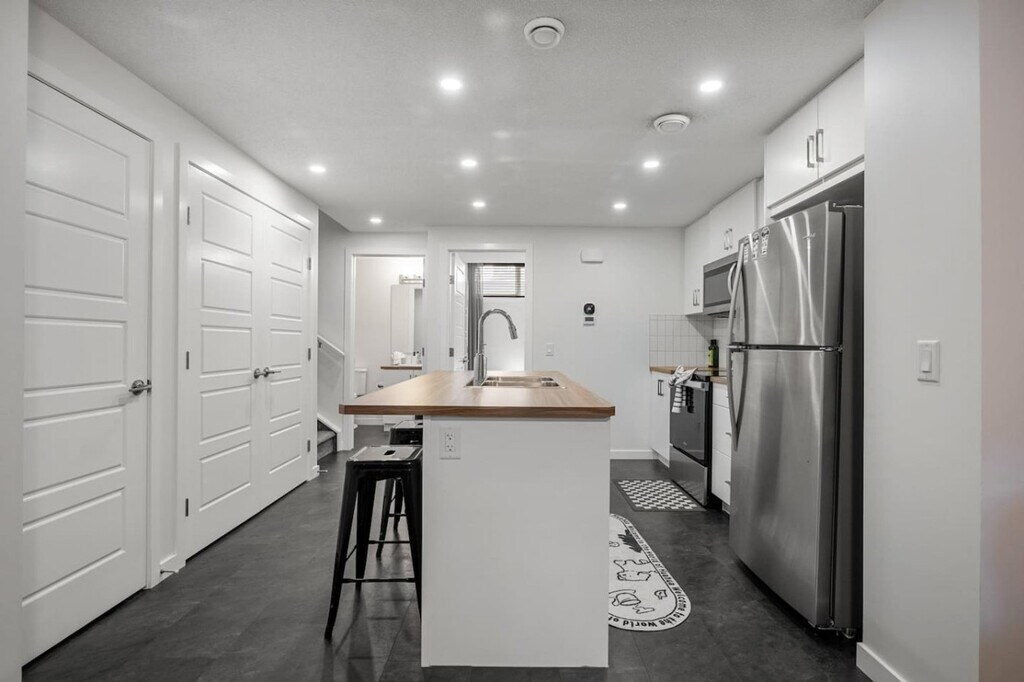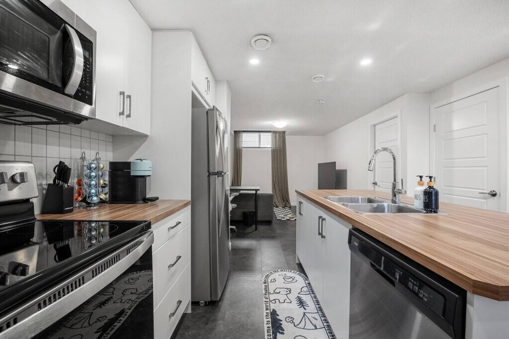 Feel at home in this modern suburban retreat in Ambleton. This basement suite offers a private entrance and non-shared space. This suite features a full kitchen with stainless steel and custom appliances, including a 4-burner stove, oven, microwave, refrigerator, freezer, and dishwasher with pods provided. A Nespresso coffee maker, toaster, blender, and other essentials are also included. For your convenience, there is a washer and dryer in-unit with detergent provided. The full-size 4-piece bathroom is equipped with towels, a hair dryer, shampoo, conditioner, and body wash. Optional upgrades include a welcome basket, birthday decor package, romantic wine & flower package, spa at home package, movie night upgrade, Christmas tree & decor, Halloween decor & pumpkin carving package, winter cozy package, beer tasting kit, diffuser & aroma set, additional bedding & sleeping arrangements, grocery pre-stocking service, and a pet-friendly package. Free street parking is provided. Located in the modern and growing community of Ambleton, this apartment is near parks, playgrounds, and scenic walking trails. Daily amenities, groceries, and dining options are only a few minutes away in Evanston Towne Centre and Creekside Shopping Centre. Ambleton offers an extensive network of pathways and green spaces, connecting guests to Symons Valley Parkway and Nose Hill Park, perfect for cycling, jogging, or leisurely walks. It's also conveniently located 2 minutes from Ambleton Park & Playground, 5 minutes from Evanston Towne Centre, 8 minutes from Creekside Shopping Centre, 10 minutes from Nose Hill Park, 15 minutes from CrossIron Mills Mall & Century Downs Racetrack, 20 minutes from Calgary International Airport, and 25–30 minutes from Downtown Calgary. Calgary Transit bus routes conveniently connect the community to nearby hubs such as Evanston, Sage Hill, and North Pointe Transit Station, providing easy access to downtown and the rest of the city. Quick access to major highways off Symons Valley Parkway and minutes from Stoney Trail makes commutes across Calgary and weekend getaways effortless. This is a basement suite, and there may be some noise from potential upstairs tenants. Smoking, vaping, or e-cigarettes are strictly prohibited anywhere on the property, and a $250CAD fine will be charged if smoking occurs with the migration of smoke or smell of smoke from the unit. No parties, drugs, excessive drinking, or loud music are allowed. Quiet hours are from 10 pm to 7 am, and guests must be mindful of neighbors and basement tenants. There is a strict complaint policy: one complaint is a warning, and the second complaint is an eviction. Keep noise under 85db, as there is a noise detector. Includes a dining area and workstation. [SI]
