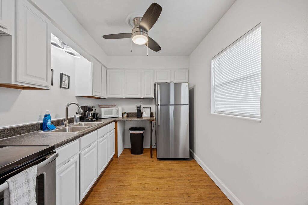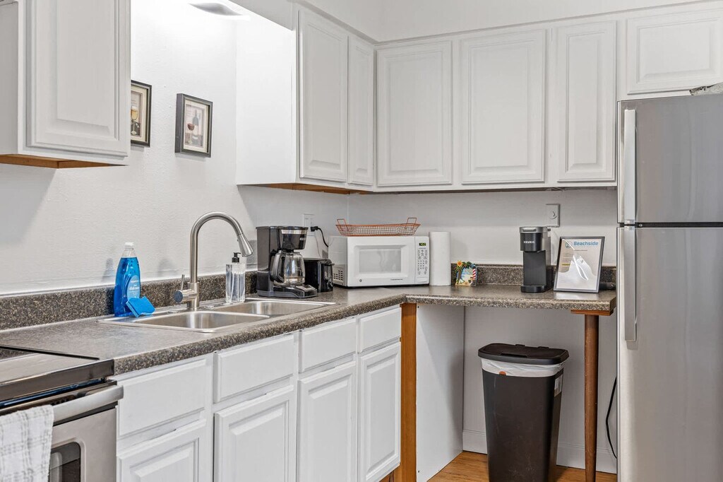 Welcome to Cocoa Beach, where this charming apartment awaits you with a cozy, nautical vibe. Featuring a king bedroom, a bathroom with a tub and shower combo, and a fully equipped kitchen with a dining nook for two, this apartment is designed for comfort. Enjoy the comfortable living room with a sleeper sofa and patio access from both the bedroom and living room, making it easy to feel at home. This apartment is thoughtfully equipped with everything you need for a comfortable stay, including WiFi, parking, and laundry facilities. The fully equipped kitchen and dining nook provide a perfect spot for meals, while the covered patio offers a delightful space for morning coffee or evening drinks. Beach gear is included, making it easy to enjoy the nearby beach, just a block away. Parking is available on-site, providing convenience for your stay. However, pets are not allowed in the apartment. Nestled in the friendly beach town of Cocoa Beach on the Florida Coast, this apartment offers the perfect balance of local charm and visitor-friendly amenities. Within a mile, you'll find local landmarks like Ron Jon's Surf Shop, the Cocoa Beach Pier, and a variety of restaurants and cafes. For day trips, Disney World, Universal Studios, and Island of Adventure are all within an hour's drive, while the Kennedy Space Center is just a half-hour away. Nature enthusiasts will love the nearby Banana River, a 31-mile lagoon teeming with wildlife. The apartment features digital locks for easy self-check-in, and while mailbox access is not available for guests, our team is just a message or call away for any assistance needed. Please note that pets are not allowed, and guests are required to replenish any initial stock of essentials provided during their stay. Additionally, all reservations require either a refundable security deposit or the purchase of a damage waiver. The apartment offers WiFi, ensuring a remote work-friendly environment for those who need to stay connected during their stay. [SI]
