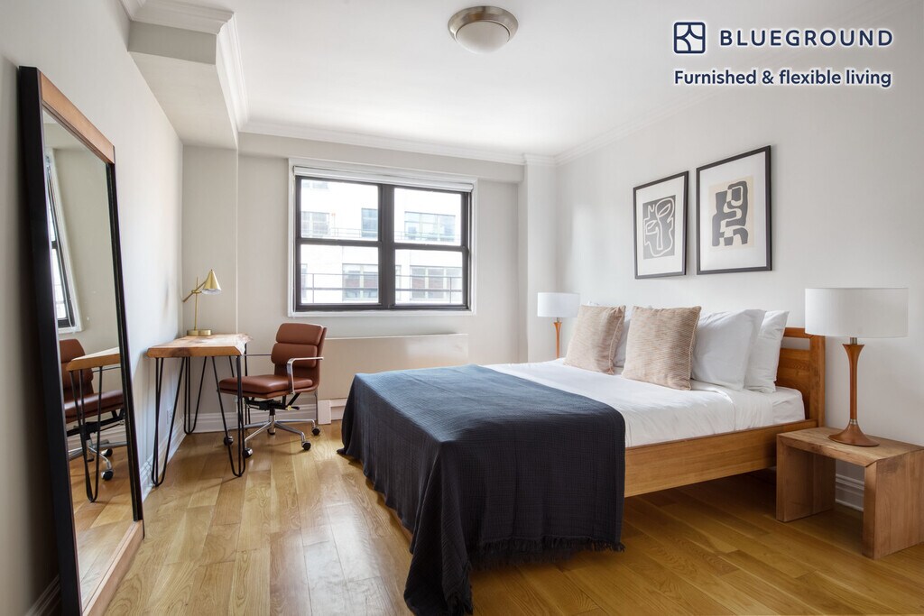 Feel at home wherever you choose to live with Blueground. You’ll love this sophisticated Kips Bay furnished two bedroom apartment with its modern decor, fully equipped kitchen, and bright living room with great high floor views. Ideally located, you’re close to all the best that New York has to offer! (ID #NYC43) The advertised rate of $6,020/month is the lowest available price, based on a 11 month(s) and 29 day(s) stay with a move-in date of February 2, 2026. Rates vary depending on the duration of stay, season, and other parameters. For exact pricing and additional pricing components, please visit our website and enter your desired move-in and move-out dates. The rate is applicable when billed upfront; it can be higher if billed in multiple payments. Brokers are welcome to reach out. Were you looking for an unfurnished lease? Try Blueground instead and upgrade from unfurnished to furnished living: - Furnished at rates comparable to unfurnished - No setup or furniture costs - save thousands - Move-in ready - save time, just bring your suitcase Designed with you in mind Gorgeous furniture, fully equipped kitchen, smart TV, and a premium wireless speaker are just a few of the amenities you’ll find inside this two bedroom apartment. Ideally located in New York, you’ll find a lot to love outside as well. When you’re ready to relax, you’ll be happy to discover every Blueground bedroom comes with superior quality mattresses, luxury linens, and cozy towels. We handle everything so you can simply show up and start living. Sleeping arrangements Queen Bed, 63in/160cm Queen Bed, 63in/160cm Amenities Building amenities unique to this two bedroom apartment include an on-site: - Doorman - Dryer in building - Elevator - Washing machine in building - Pets allowed Arrival and ongoing support The entire apartment is yours to enjoy! Throughout your stay, you’ll have access to our Client Experience team through the Blueground App. You can schedule additional cleanings, submit maintenance requests, and view our neighborhood recommendations with just a few taps. We’ll share all details upon confirmation of your stay. Ideally Located This furnished property is situated in Kips Bay. Stretching from the East River to Lexington Avenue, the peaceful neighborhood offers convenience and easy access to the rest of the city. Several hospitals are located here, making it a hub for medical care. Kips Bay offers dining options for every budget as well as numerous cinemas and fitness centers. During the weekends, locals stroll alongside the water, take the water taxi to another borough, or hang out in one of the parks, such as Bellevue South. From here, Rockefeller Center is only 20 minutes away by subway. Other things to note This Blueground apartment has flexible lease options, allowing you to book it for one month, a year, or more. Pets are welcome, though weight limits and breed restrictions apply and may incur fees. Brokes CYOF. We take great pride in ensuring every photo displayed is shot in our own units with our actual furnishings. That said, we regularly refresh our decor and furniture arrangement, which may differ from what’s pictured. [SI]