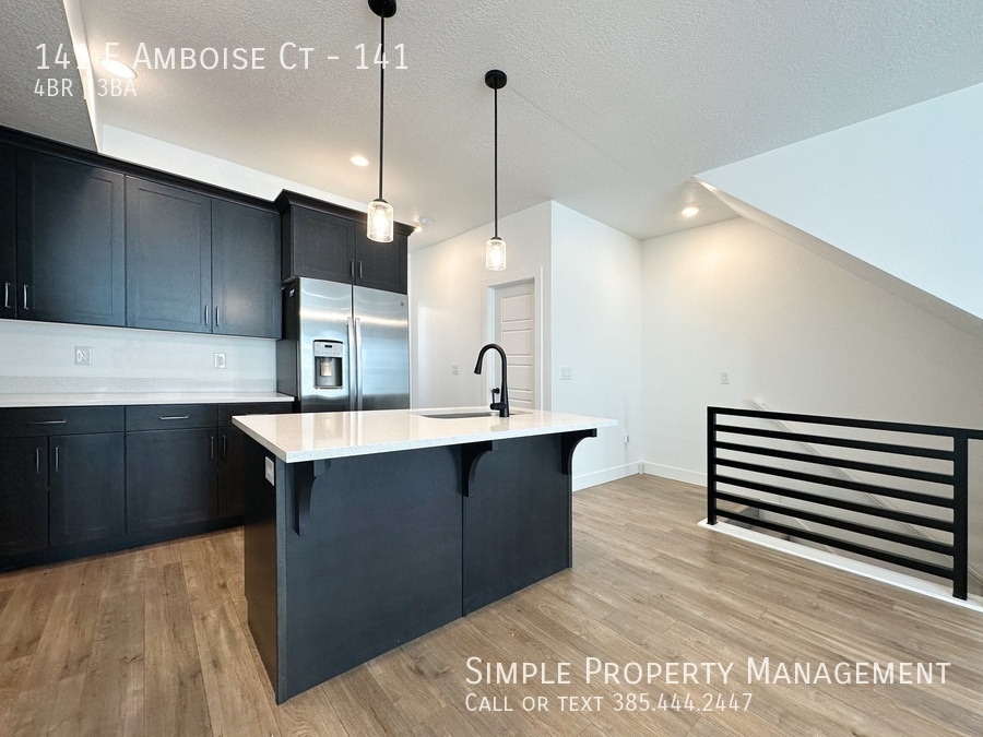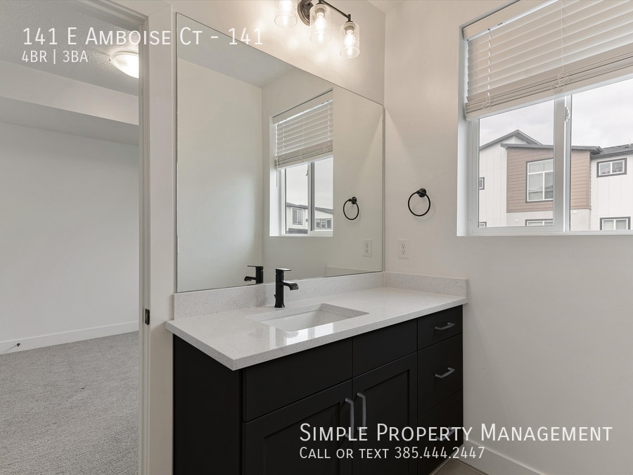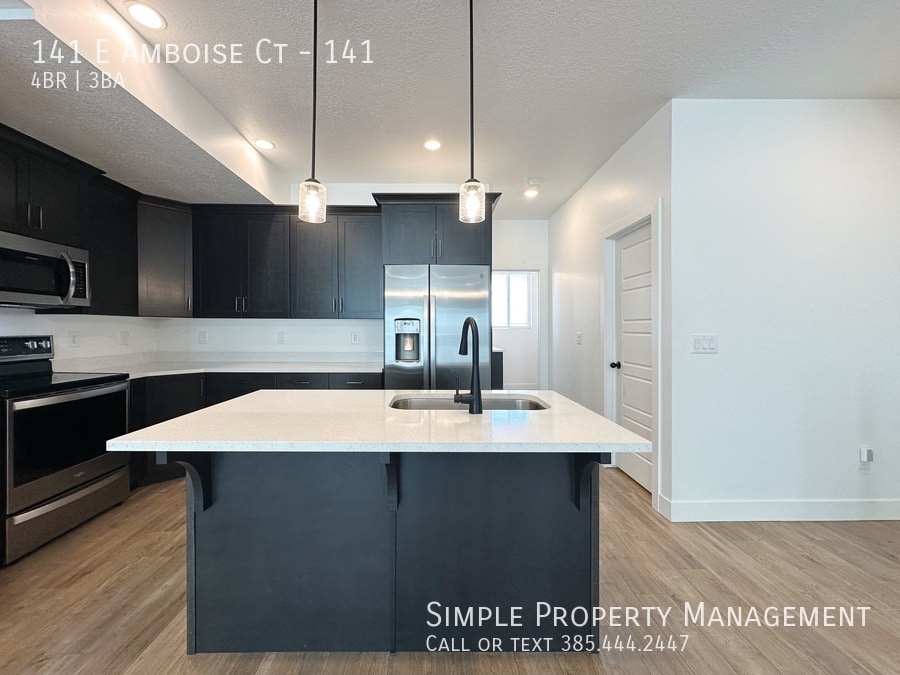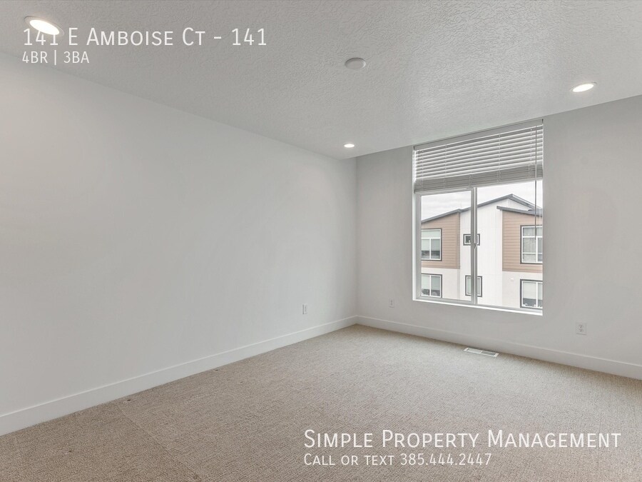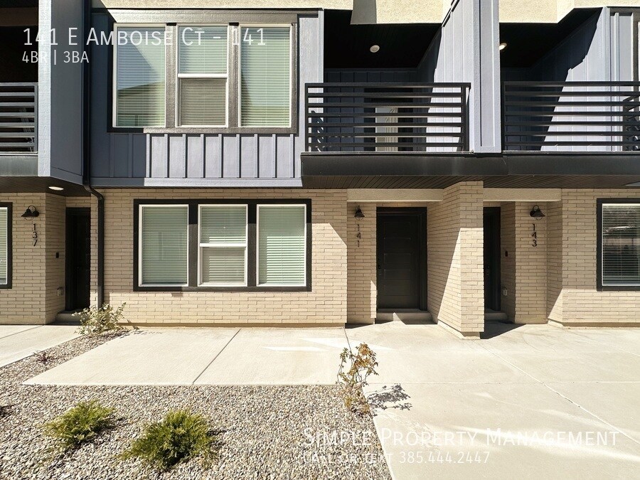 Beautiful Sandy Townhome with much to offer! Built in 2022, this home is still practically brand new and offers a modern floor plan with 4 bedrooms (2 master suites) 3 baths, tall ceilings, and a nice open family room, kitchen and dining area. Some of the upgrades you are sure to love are the quartz countertops throughout, high-end laminate flooring, and extra tall white shaker style kitchen cabinets. Attached 2-car garage, and the 2nd-story balcony. Sandy is the heart of the valley. Great community located near schools, park, shopping, and a short drive to I-15 & TRAX. FIRST FLOOR: -Main and garage entry -Guest bedroom MAIN FLOOR: -Open kitchen, dining & entertainment area. -Overlook deck. -Bedroom -Full bath bath. TOP FLOOR: -Two master suites with high ceilings, private bathroom and walk-in closet. -Laundry room (appliances not included). -Walk-in linen closet. HVAC: Central heating & AC. GARAGE & PARKING: -2-car garage. SERVICES: Tenant pays all utilities and services. Electric and gas go in to the tenant's name. Water, sewer, trash and internet are a flat rate of only $95/mo. OTHER: Advertised rent rate based on a 12-month term. Security deposit equal to one month of rent and is due at lease signing. Includes non-refundable portion of $250. Tenant required to maintain renters insurance at all times. All adults required to apply. $45 per applicant due with application. Lease documentation fee of $50 due at lease signing. One dog or cat allowed with $500 pet deposit and $50/mo pet rent.