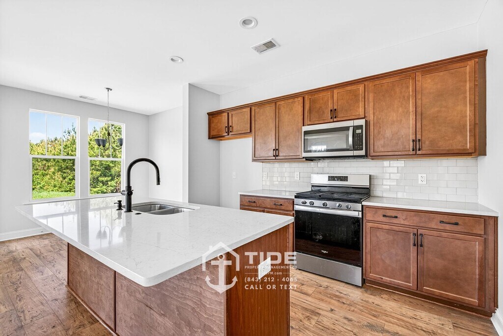 Enjoy a lifestyle of comfort and simplicity in a home designed for easy, everyday living. Nestled in Goose Creek, you’ll be close to local shopping, dining, and major roadways while enjoying a quiet neighborhood setting. Inside, you’ll find upgraded laminate flooring, granite countertops, and sleek black-finish fixtures that give the home a modern touch. The kitchen is equipped with a glass-top range and essential appliances for everyday convenience, while the first-floor primary bedroom offers added privacy and ease of access. The layout flows seamlessly between living and dining areas, creating a functional space for both relaxing and entertaining, with well-separated bedrooms for added comfort. Located near Naval Weapons Station Charleston and just a short drive to Charleston, you’ll also enjoy close proximity to shopping in the Goose Creek area and a nearby elementary school, making daily routines even more convenient. Schedule your booking now to experience this home in person!