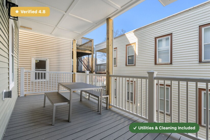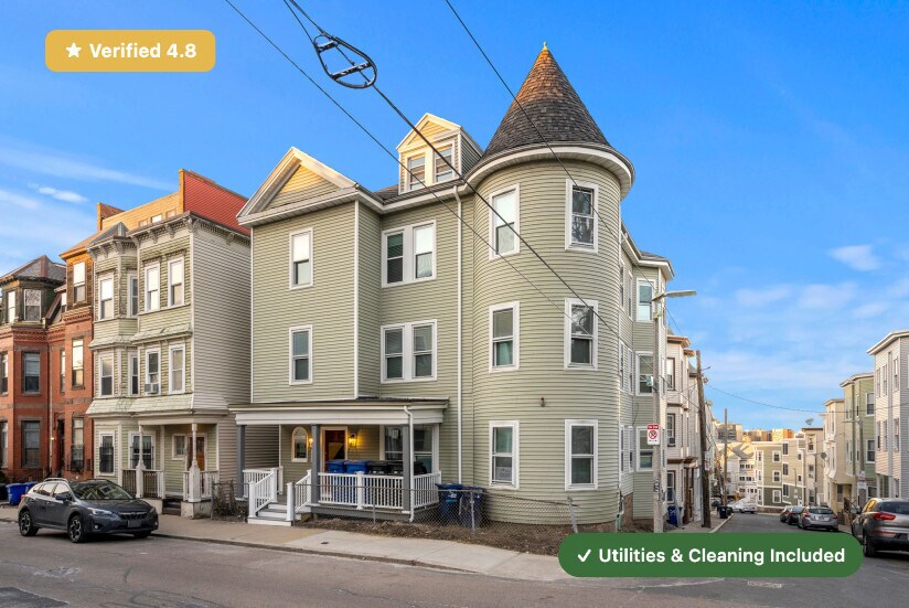 No broker fee! Only last month deposit needed. RoostUp is offering a beautifully renovated private bedroom in the Mission Hill Neighborhood of Boston. Less than a 5 minute walk to Fernwood MBTA Green Line train station in a 5 bedroom/4 bath apartment. Check out RoostUp's 100+reviews averaging 4.8-stars on Google and Facebook. Completely furnished all-inclusive concept from RoostUp. Fully-equipped kitchen included with granite countertops, new appliances and 4K Smart TV. RoostUp amenities include all utilities, high-speed WiFi, in-unit laundry, central air, and bi-weekly cleaning. Here's what is included: Furnished private bedroom ------------------------------------------------------ - New bed and high quality mattress - Matching dresser with desk, lamp and chair - Full length mirror and coat rack - Full-size closet Stocked kitchen and furnished living area ------------------------------------------ - Renovated kitchen with new countertops & stainless steel appliances - Kitchenware, dishes, glassware and flatware - Fully furnished including sofa, chairs, coffee table - 4K Smart TV Utilities & Cleaning ------------------- - All utilities (gas, electric, wifi) - Bi-weekly professional cleaning - 1Gbps WiFi - Keyless smartphone locks - Central A/C - Free in-unit laundry - Weekly trash and recycling removal - Included for one flat monthly fee RoostUp never charges a broker fee or security deposit. Only First and Last Month Rent due at lease signing. Sorry, no pets. The RoostUp application process includes a credit and background screening. International applicants can submit copies of valid passport & visa. Please note there is an application process that includes a credit and background check.
