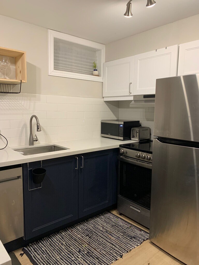 Recently renovated one bedroom basement apartment with above-grade, bright windows. The kitchen includes stainless steel appliances and quartz countertops. The apartment has all the amenities and is located in a vibrant area, close to the beach, public transportation and award-winning restaurants.