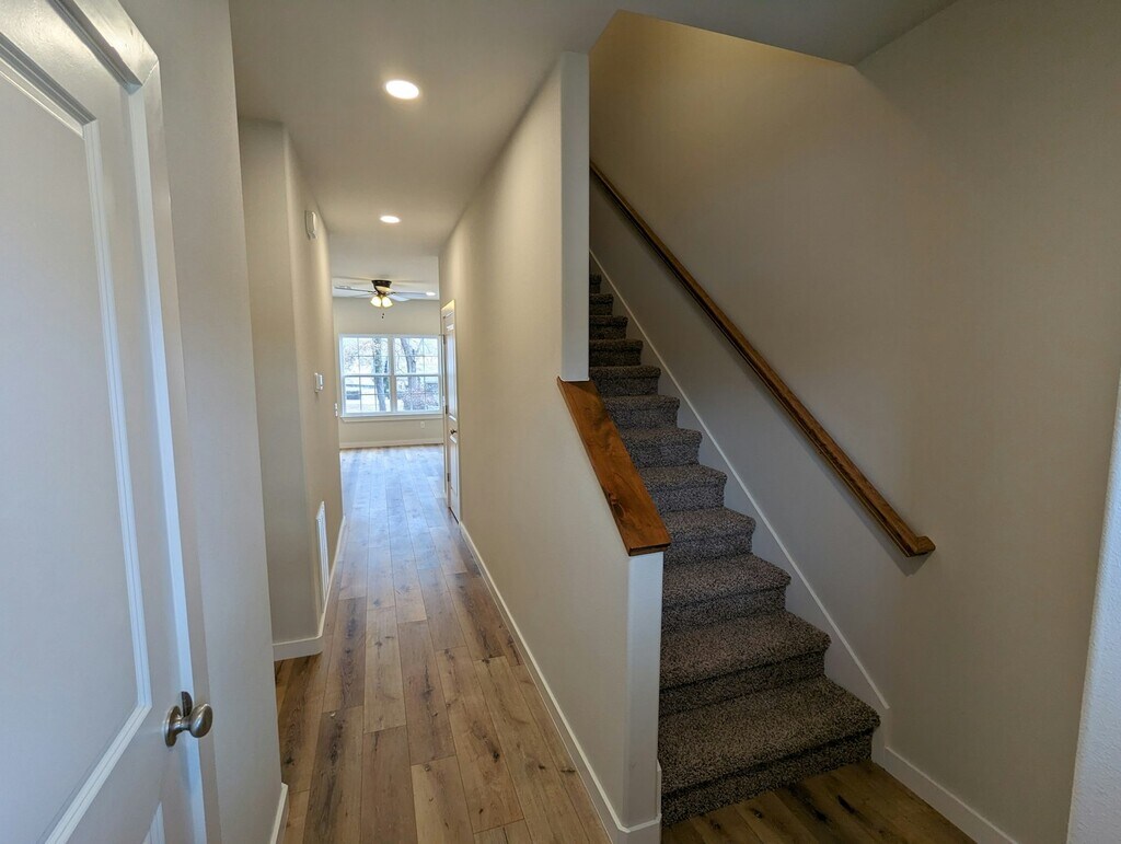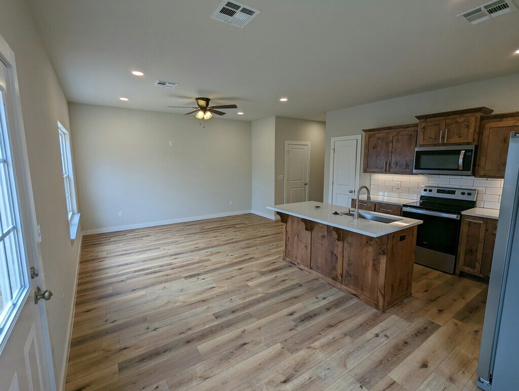 Brand new 3 bed 2.5 bath downtown home with great views of Tahlequah. Luxury vinyl plank flooring, quartz countertops, stainless appliances, large fenced yard with a nice back deck, one car garage, and spacious laundry room with included washer and dryer. Call or Text Steven Wright, CENTURY 21 Wright Real Estate ***NO APPLICATION FEE***