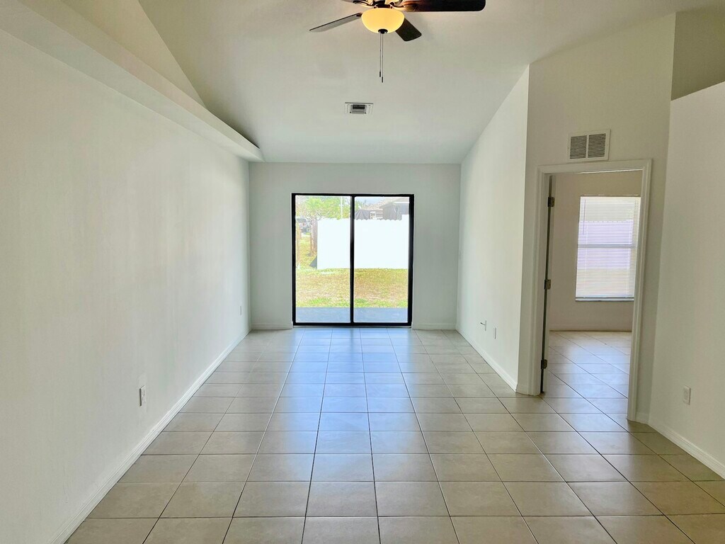 Welcome to this charming duplex located at 143 Santa Barbara Boulevard, in the heart of Cape Coral, FL. Built in 2017, this modern residence offers a spacious 1,209 square feet of living space, thoughtfully designed to provide comfort and convenience. Step inside to discover an inviting open floor plan that seamlessly connects the living, dining, and kitchen areas, perfect for both relaxing and entertaining. The kitchen is equipped with contemporary appliances, ample cabinetry, and a breakfast bar, making meal preparation a delight. This unit features three well-appointed bedrooms, providing plenty of space for rest and relaxation. The primary bedroom includes an en-suite bathroom, offering privacy and convenience. An additional full bathroom serves the other two bedrooms, ensuring comfort for all residents. The property boasts a sleek, modern design with quality finishes throughout, including tile flooring and large windows that fill the space with natural light. A dedicated laundry area adds to the functionality of this home. Located in a vibrant community, this property is just a short drive from local shops, dining, and entertainment options, as well as beautiful Gulf Coast beaches. Experience the best of Cape Coral living in this delightful duplex.