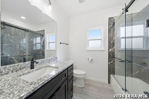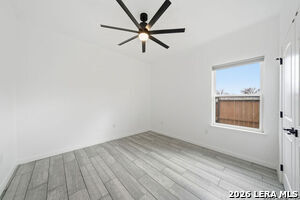 Welcome home to this beautifully designed 3-bedroom 2-bath residence offering over 1,900 square feet of thoughtfully planned living space in the desirable Woodbridge Farms community. From the moment you step inside, you'll appreciate the seamless ceramic tile flooring throughout, creating a clean, modern look that's both stylish and low-maintenance. The heart of the home is the chef's kitchen, featuring custom cabinetry, a spacious island with breakfast bar seating, a dedicated dining area, and a walk-in pantry that provides exceptional storage. Whether you're hosting guests or enjoying a quiet night in, this kitchen is built for both function and entertaining. The private, fenced backyard offers a peaceful retreat with plenty of room to relax or let pets roam freely. Inside, a large laundry room adds everyday convenience, while the well-appointed bedrooms provide comfortable personal space for family or guests. Ideally located just minutes from top-rated schools, HEB, and a variety of boutique shopping and dining options, this home perfectly blends comfort, style, and convenience. A rare find in a sought-after neighborhood, don't miss the opportunity to make it yours.