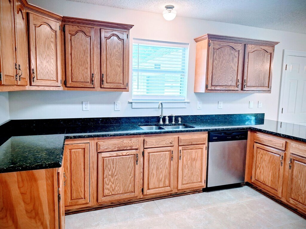 Updated beautiful 4 bed 2 bath home in demand school district. All new appliances, new granite counter top in kitchen, new paint, ceramic tile. No carpet. Nice landscaping in front and back yard. Fenced back yard w/covered patio. Large master suite w/2 walk-in closets. Lots of storage., Jetted tub, separate shower, double vanity. Large den w/fireplace, formal dining room. A must see! NO pets allowed.