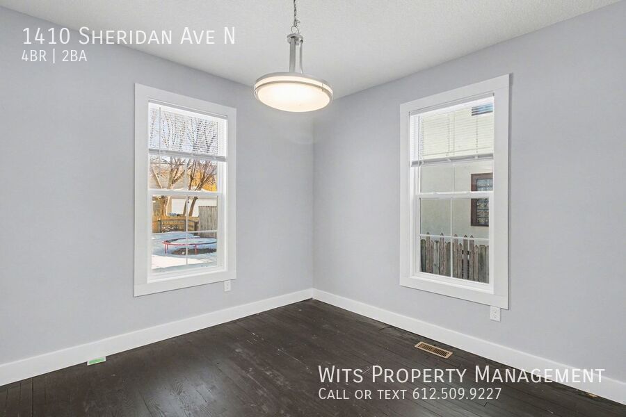 Welcome to 1410 Sheridan Ave, a comfortable and well-located rental offering the perfect blend of convenience and livability. This property features a practical layout with bright living spaces, and a welcoming atmosphere that feels like home the moment you step inside. Situated in a convenient neighborhood with quick access to local shops, dining, parks, and major roadways, this location makes commuting and daily errands a breeze. Off-street parking and nearby public transportation add to the ease of living here. While Theodore Wirth Park is just a few blocks away with many trails to enjoy. Schedule a showing today! Additional Terms: -12 month initial lease length. Longer term may be available upon request. -$60 application fee per person 18 years of age and older. -1 month's rent for security deposit -Tenant pays all utilities -Lawn/Snow care credit reflected in advertised rent -Pet allowed with owner approval and additional pet fees. -No smoking -Tenant required to purchase or provide proof of renter's insurance that meets minimum requirements -A lease origination fee of $100 will apply to accepted applicants at lease signing, and will be due with move-in funds Renter screening criteria includes: -Verifiable household income of 2.5 x rent -Criminal history -Rental history -Credit history Here is a link to more info on screening criteria from the City of Minneapolis: We follow the Inclusive Screening Criteria option. Agency Disclosure: Wits Property Management is an authorized agent of the Landlord and represents them as their property manager. None