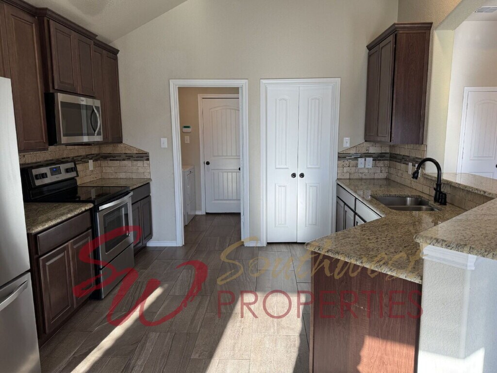 Welcome to this exceptional home in the highly sought-after Lakewood Estates neighborhood — a wonderful community known for its welcoming atmosphere and family-friendly setting. This property offers the space, comfort, and features that make everyday family life both easy and enjoyable. Outdoor Living Made for Family Time The fully fenced, private backyard provides plenty of room for kids to play, pets to roam, and family gatherings to flourish. An extra-large patio with decorative lighting creates the perfect setting for evening dinners, weekend barbecues, or relaxing while the kids play. Bright & Open Interior Step inside to a warm and inviting open-concept kitchen and living area filled with natural light from many windows throughout. The spacious living room features: A cozy stone fireplace Built-in desk and shelving — ideal for homework or working from home Plenty of room for family movie nights and gatherings Functional & Stylish Kitchen The kitchen is designed with families in mind, offering: Breakfast bar for quick meals or after-school snacks Stainless steel appliances Pantry for extra storage Ample cabinet and counter space Relaxing Primary Suite The generous primary bedroom serves as a peaceful retreat and connects to a private bathroom featuring: Dual sinks A soaking tub Two large closets This beautiful home combines space, comfort, and thoughtful design in a neighborhood perfect for families. Schedule your showing today and see why Lakewood Estates is such a wonderful place to call home!