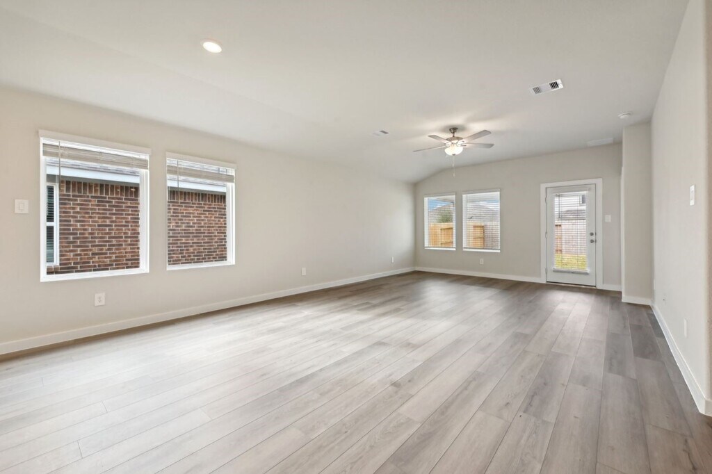 Light-filled,energy-efficient one-story in Stewart’s Ranch,just off SH-336 with quick I-45 access. Open-concept living with a stylish kitchen featuring white Shaker cabinets,quartz counters,and a hexagon-tile backsplash. Built for comfort and savings: spray-foam insulation,Low-E windows,water-wise fixtures,tankless water heater,and ENERGY STAR Whirlpool appliances. Smart-home features add everyday ease,while faux-wood blinds and front/back sprinklers keep life low-maintenance. Enjoy a move-in-ready home in a prime Conroe location close to shopping,dining,and recreation—don’t miss this one! MLS# 57432178