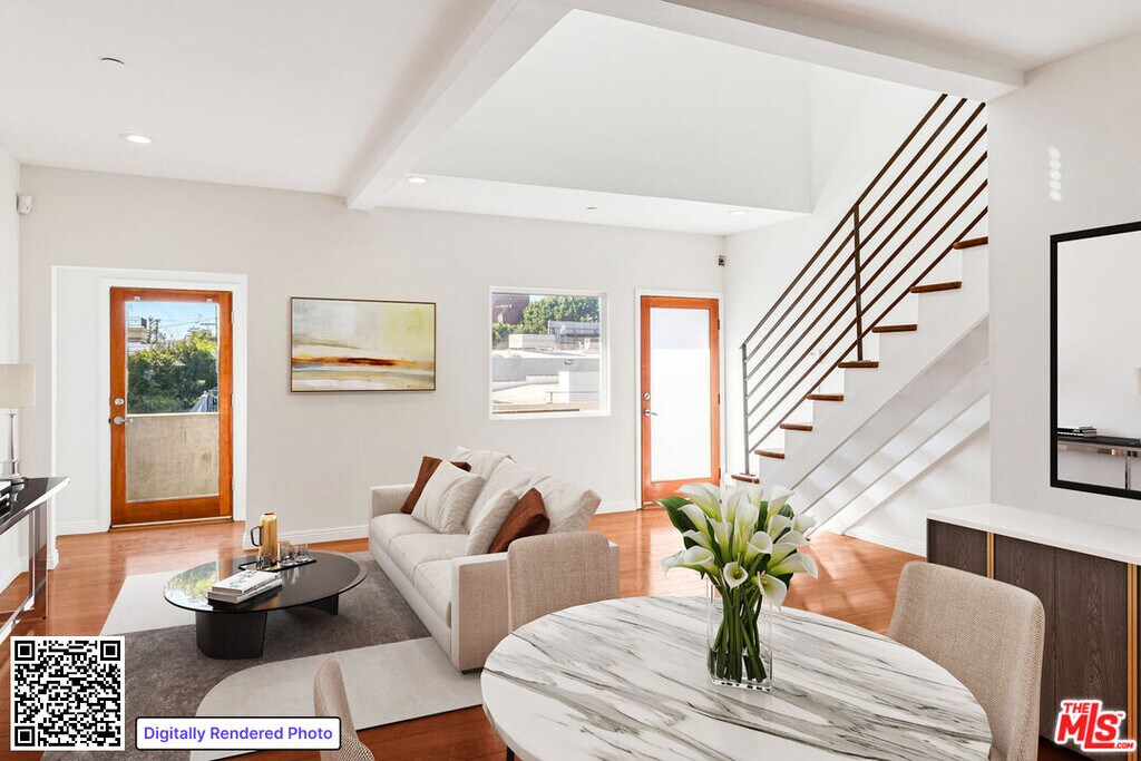 Loft-like living with two big bedrooms plus office & large patio space! Beautifully updated bathrooms & kitchen with great appliances, fresh paint & hardwood floors. Two large bedrooms, one upstairs & one down, both with HUGE closet space. A separate office/gym space is accessed off a large, private, rooftop deck. Laundry in unit. Central AC. One car parking in gated carport. Unique live/work space in a 3-unit contemporary building near studios, hospitals & freeway access in the heart of Santa Monica. MLS# 26636659