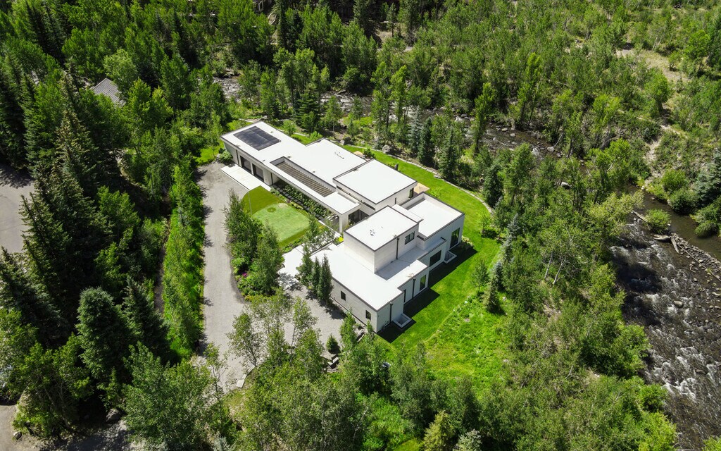 Discover a bold new expression of mountain living in this newly constructed architectural masterpiece, nestled directly on the banks of the Roaring Fork River. A striking fusion of cutting-edge design and luxurious comfort, this home offers an unparalleled Aspen lifestyle. From the moment you arrive, the home's presence is undeniable—meticulously landscaped grounds burst with vibrant blooms, and a private putting green invites relaxed mornings in the fresh alpine air. Step inside and immerse yourself in a vivid world of creativity and sophistication. Soaring ceilings, oversized windows, and artfully curated finishes create an atmosphere of dynamic elegance. Each room is infused with rich color, sleek lines, and natural light. The main level offers a grand living area anchored by a designer kitchen featuring top-of-the-line appliances, sleek countertops, and custom cabinetry. Also on this level: a two-car garage, a dedicated office, a whimsical powder room, the lavish primary suite with spa-like en-suite bath, and two additional en-suite guest bedrooms. On the lower level, discover a generous en-suite guest suite alongside a sprawling game and media room. Whether you're playing billiards, ping pong, shuffleboard, or foosball, this is a space designed for unforgettable fun. Two cleverly concealed Murphy beds and a full bathroom add flexible sleeping arrangements. Ascend to the top level for a fully equipped home gym and an expansive rooftop patio where breathtaking mountain views elevate your workout. Outdoor living is just as refined. Dine alfresco on the expansive patio, unwind in the hot tub as the river flows beside you, or gather by the riverside with direct access to the water for fly fishing or tranquil morning coffee. Ideally located just minutes from downtown Aspen and world-class ski resorts, yet tucked away in a serene, private setting, this one-of-a-kind home is a vibrant sanctuary for those seeking bold design, natural beauty, and elevated luxury in perfect harmony. More than a home—this is an unforgettable Aspen experience. A place to live colorfully, boldly, and beautifully. Seasonal Monthly $300,000 Long Term Monthly $150,000 + Utilities