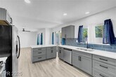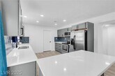 Don’t miss this rare opportunity to own a beautifully renovated three-bedroom, single-story home in the historic Huntridge community. This downtown gem features a stunning kitchen with sleek quartz countertops, stainless steel appliances, and soft-close gray shaker cabinets, opening to a spacious dining and living area that’s perfect for modern living. Throughout the home, you’ll find luxury vinyl flooring, 5-inch baseboards, and abundant natural light. The oversized backyard offers endless possibilities for entertaining or creating your ideal outdoor retreat, while recent upgrades—including new windows and a new sewer line—provide added comfort and peace of mind.