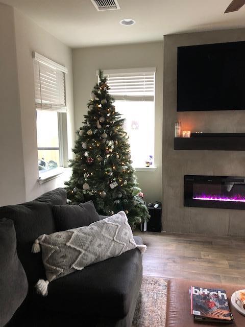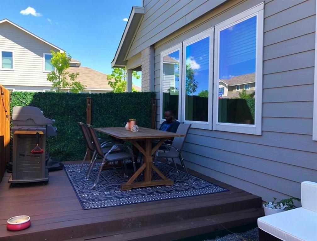 Beautiful and well-maintained 3BD/2.5BA home offering contemporary style and a comfortable, functional layout. The primary suite is conveniently located on the main floor, featuring a spacious bath and walk-in closet. The open-concept living area includes a cozy fireplace, abundant natural light, and a dedicated dining space. The kitchen is equipped with granite countertops, stainless steel appliances, and ample cabinet space—perfect for everyday living or entertaining. Relax on the screened-in porch with mounted TV or enjoy the private, fenced backyard with deck, ideal for grilling and gatherings. Upstairs offers two secondary bedrooms and a full bath, creating separation and flexibility for guests or a home office. Additional features include an attached 2-car garage, ceiling fans throughout, and designer touches that enhance the home’s charm. Located minutes from Samsung, Apple campuses, and The Domain, with quick access to major employers, shopping, and dining. Community amenities include a pool, clubhouse, and splash pad for added leisure and enjoyment.