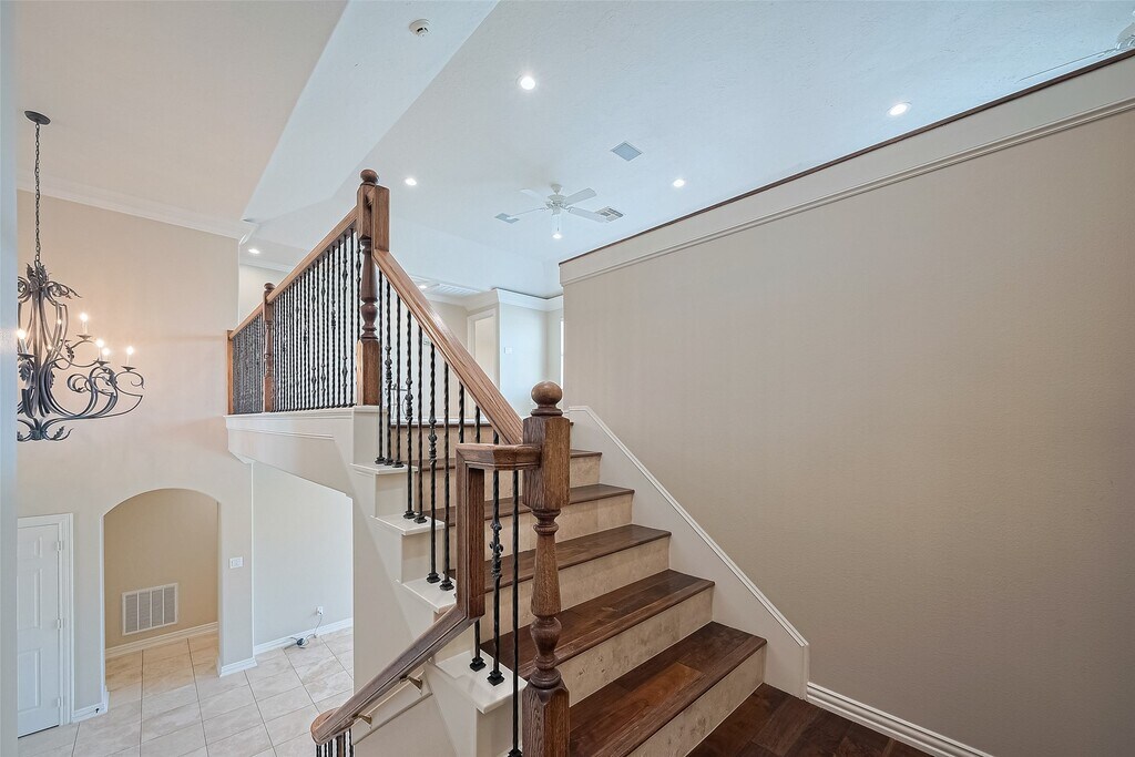 Gorgeous Mediterranean lake view house has 5 Bedrooms & 4 Bathrooms with Formal Living,Formal Dining,Family Room & Study. Beautiful Travertine Marble floors,Hardwoods in Study and Master,Crown Molding,picturesque views from many windows & tropical saltwater Pool/Spa with beautifully landscaped Backyard. Expansive Master down with sitting area & lavish bath plus private access to the backyard. Huge Game room upstairs plus an extra room with closet (great for an exercise room or kid’s TV room). Huge secondary bedrooms & sophisticated finishes in the baths. Immaculate home with many special features. Gated & security guarded community with active officers that patrol 24/7. Community has clubs,tennis courts,pool & park.House has tons of upgrades. Renovated kitchen,all bathrooms & laundry. Upgraded Appliances & 3 AC Units. 3 car garage with installed storage unit.Master bedroom with pool access. Excellent public schools.Village School nearby. Central location close to everything. MLS# 86109873