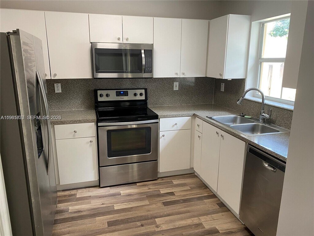 Beautiful and cozy one story corner villa in 24 hours gated community. 3 bed/2 bath 1 car garage. Recently remodeled, new vinyl floors through out in modern neutral color. Just painted. Stainless steal appliances. New washer and dryer. Very private, no neighbors in the back, paver patio and gated. Great location, easy access to major highways. Walking distance to shopping center. Community has pool and tot area, Ready to move. MLS # A11985877
