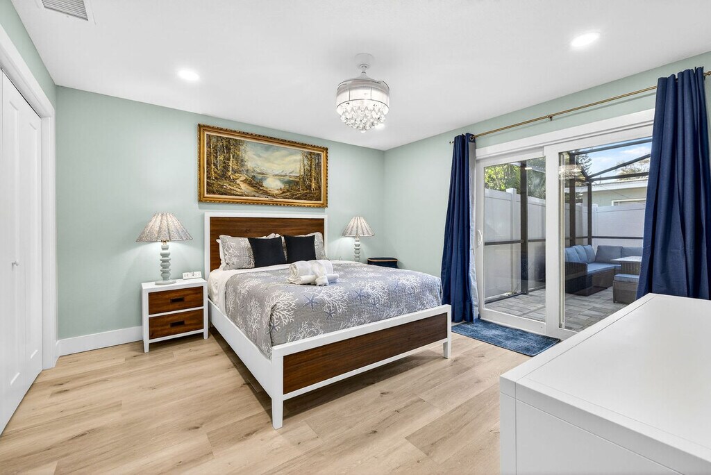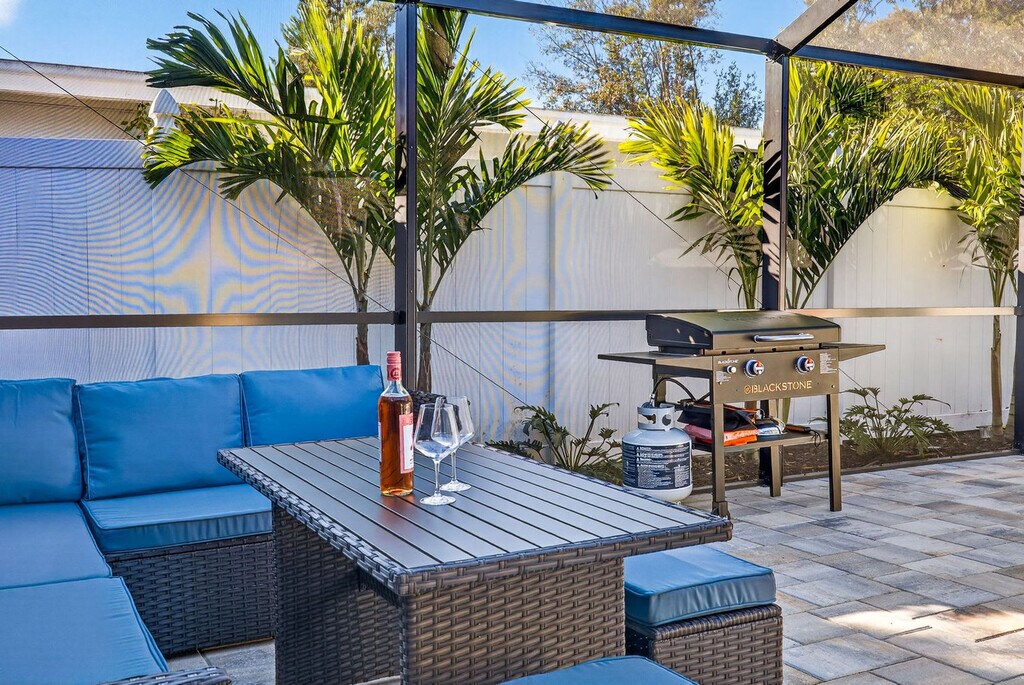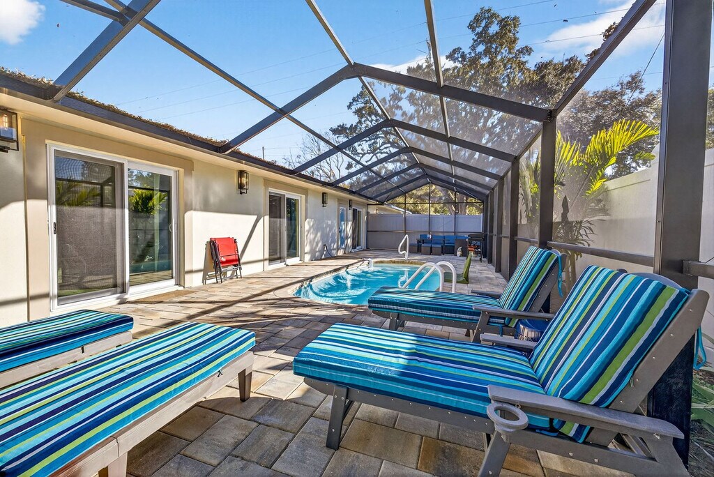 The advertised rate of $5,229/month is the lowest available price, based on a 1 month(s) and 2 day(s) stay with a move-in date of February 21, 2026. Rates vary depending on the duration of stay, season, and other parameters. For exact pricing and additional pricing components, please visit our website and enter your desired move-in and move-out dates. The rate is applicable when billed upfront; it can be higher if billed in multiple payments. Picture it: Dunedin. Feel at home in this space where the Florida sun meets refined, modern design with a touch of "Old Florida" soul. This home offers a sophisticated blend of coastal relaxation and curated nostalgia, featuring original pastel oil paintings that capture the timeless elegance of the Gulf Coast. The layout is defined by an open-concept flow that feels both airy and grounded, accented by beautiful floral and landscape artwork. The main living area features clean lines and a modern aesthetic, centered around a large kitchen island with bar seating and premium stainless steel appliances. The expansive, fully screened outdoor sanctuary features a private pool and shaded lounge areas perfect for sunset cocktails and conversation. The bright, open-concept chef’s kitchen has a massive island, ideal for gathering together for a late-night talk. The bedrooms are high-end retreats designed for actual rest. The primary suite is a spacious sanctuary with direct access to the pool deck and a private en-suite bathroom. The guest bedrooms are thoughtfully appointed rooms, including options with dual beds. The bathrooms are updated with modern fixtures, including glass-enclosed walk-in showers and stone-topped vanities. The outdoor space is the true heart of the home, featuring a fully screened-in patio that ensures your poolside relaxation is enjoyed without the local pests. For those who keep their routine on the road, the private fitness area includes a stationary bike and free weight equipment. A fee of $100 per pet per stay, or per month for stays exceeding 28 days, applies for all reservations and private driveway is available for guest use. Nestled on a quiet circle in the charming town of Dunedin, you are perfectly positioned between residential tranquility and the energy of Florida’s coastal attractions. The area offers a relaxed pace of life with easy access to the Pinellas Trail, local breweries, and the white sands of Honeymoon Island. With easy access to major roads, exploring the Tampa Bay area is effortless. Rideshare services like Uber and Lyft are readily available, and most attractions are just a short drive away. Home access should be between 9 AM and 11:59 PM. If you need to enter or leave the home outside of these hours, please contact our team in advance to ensure smooth access and address any potential issues with the electronic door locks. Late check-outs past 10 AM incur a fee up to $100. Smoking violations or the presence of smoke smell may incur a minimum $250 remediation fee. Quiet hours are from 10 PM to 9 AM, and you should refrain from loud music during these hours. Disabling or removing security devices or any technology results in a fee or removal from the home without a refund. Only guests listed on the reservation are allowed on the property. Illegal drug use results in immediate eviction without a refund. The noise level must stay below 80 decibels at all times; guests are automatically notified of violations by text. A dedicated indoor fitness area with a stationary bike and a quiet workspace is available for those who need to balance leisure with a little focus. [SI]