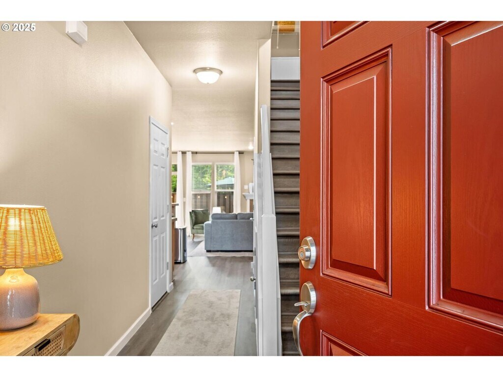 Tucked away in the highly sought-after Evergreen Park neighborhood, this beautifully updated townhome offers a rare blend of comfort, privacy, and convenience. Backing to a peaceful nature preserve, the home features a private, fully fenced backyard—perfect for relaxing and enjoying the serene surroundings. Inside, you’ll find an open great-room floor plan designed for easy living and entertaining. The centrally located kitchen includes a large island with an eat-at bar for additional seating, ample cabinetry, and a generous pantry. Upstairs, the spacious bedrooms boast vaulted ceilings and are connected by an open loft-style hallway—ideal for a home office, reading nook, or flex space. Additional features include luxury vinyl plank flooring throughout (no carpet), fresh interior paint, new washer and dryer, new blinds, a cozy gas fireplace, central air conditioning, and an attached one-car garage. Conveniently located near Intel, Amazon, Genentech, Hillsboro Airport, and with quick access to Highway 26, this home offers both tranquility and an easy commute. Rent: $2,500 Security Deposit:$2,400 Cleaning Deposit: $400 Pet Deposit: $500 per pet, no pets under the age of one of an aggressive breed.