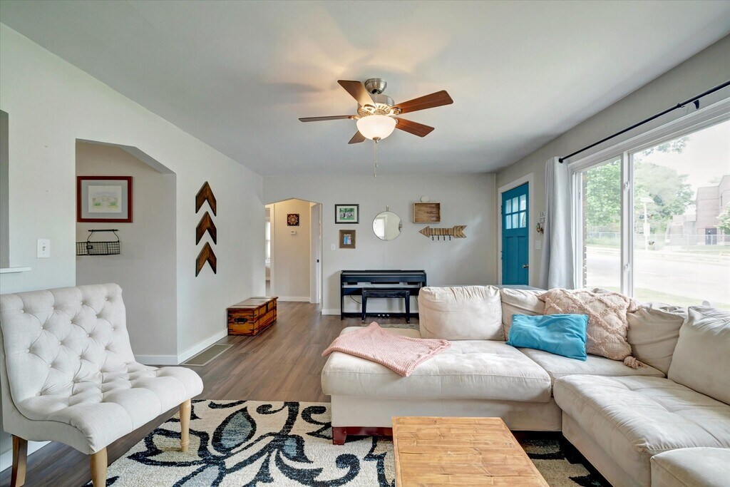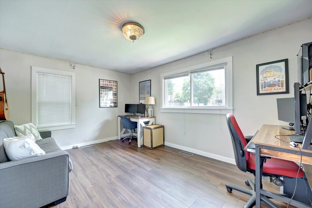 This adorable and spotless home is available for rent for the first time after June 10! It boasts all hard service flooring and is totally pristine. The living room opens up into the kitchen to create an inviting and open concept feel. Both bedrooms are large and very comfortable. The bathroom is shiny clean and so cute! Off of the kitchen opens up to a fantastic large, oversized deck that looks out onto the colorful houses of S Dunn St. The view is so wonderful! There is a very large and completely fenced in yard past the deck with a firepit and a lovely space to enjoy the outdoors. There is a large, clean basement for extra storage. The house comes with more than enough priceless, private off street parking. We can't say enough good things about this house!