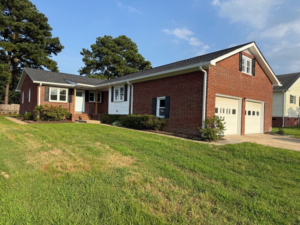 Beautifully Renovated Duplex Centrally located in Chesapeake, fantastic brick ranch 3 bedroom 2 bath apartment with 2 car attached garage, screened porch and storage shed on site. Fully renovated with new paint, cabinets, stainless steal appliances and granite countertops. Expected to be ready for move in 5/1/26. Call to see the great space that you would find in a single family home Pets nego.