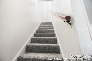 Welcome to this beautifully maintained one-bedroom, one-and-a-half-bath condo in the in Capistrano Condominiums. This charming home offers a perfect blend of comfort, privacy, and convenience. Step inside to find all your living areas on the main floor, featuring new laminate flooring, a bright and airy kitchen with upgraded countertops, and an inviting open-concept layout ideal for relaxing or entertaining. The attached garage provides your own private parking, a rare find in condo living. Upstairs, you'll discover a spacious open loft bedroom with soaring high ceilings, brand-new carpet, and a large walk-in closet. The soundproof windows ensure peace and quiet while still letting in beautiful natural light. Residents enjoy controlled access through a gated entrance and can take advantage of community amenities like the refreshing pool. Located in a prime area off Churchill Estates and Blanco Road, you're just minutes from San Antonio International Airport, with great restaurants and local favorites nearby-including Blanco BBQ.This condo is perfect for those seeking a stylish, low-maintenance lifestyle in one of San Antonio's most convenient locations