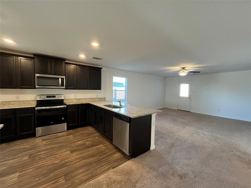 SPECIAL! Rent will be $1700 with a 3/10 or sooner move in ($1800 with a later move in, saves $1200 a year!)! Well-maintained single-story home built in 2022 offering 3 bedrooms and 2 full bathrooms with a practical, family-friendly layout. The open-concept kitchen opens to the living and dining areas and features granite countertops, stainless steel appliances, ample cabinetry, a pantry, and a breakfast bar, with refrigerator included. The primary bedroom offers a walk-in closet and private en-suite bath, while two additional bedrooms provide flexible living space. Additional features include a dedicated laundry room, recessed lighting, ceiling fans, energy-efficient windows, a covered front porch, fenced backyard, and an attached two-car garage. Conveniently located near schools and community amenities including parks, trails, playgrounds, picnic areas, and a dog park. MLS ID 3948428