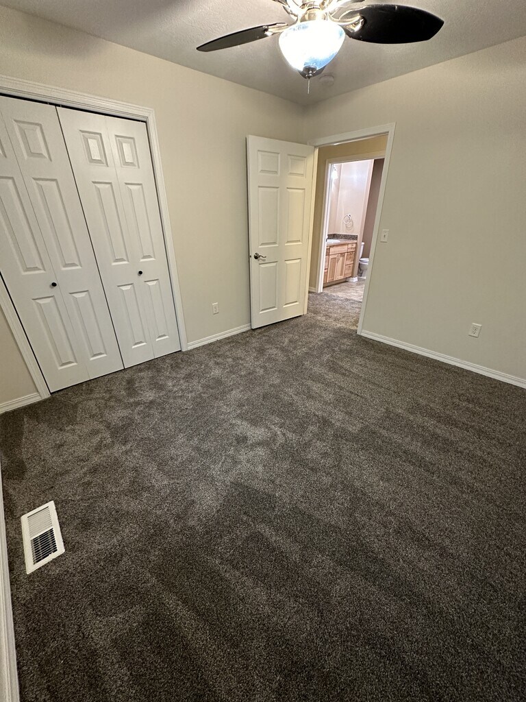 Beautiful Single Family House Available with Central AC! Single Story 4 bed 2 bath 1488 sq ft house with attached 2 car garage and fenced yard. Shed included. Washer and gas dryer hookup in laundry room. The house is on a quiet street on the edge of town with a living room view to a large playground and the mountains in the distance. Will be getting new carpet throughout and exterior of the house painted. Backyard has a great spot for a large garden. Tenant responsible for all utilities. Pets are welcome at additional fee. Application required from everyone over 18.