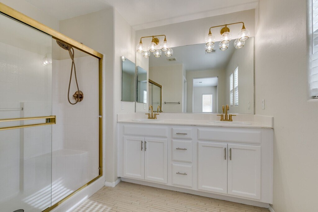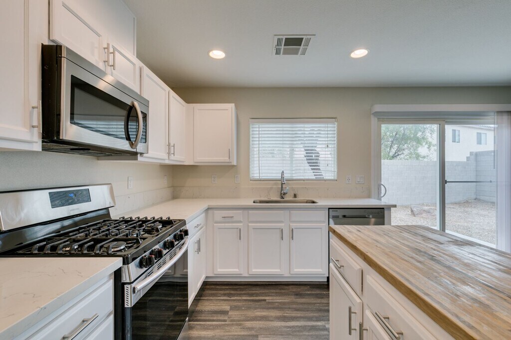 Freshly updated two-story home with a bright open layout and modern finishes throughout. The spacious living and dining areas connect to an upgraded kitchen featuring white cabinetry, stainless steel appliances, gas range, dishwasher, and a custom butcher block-style island. Fresh interior paint, brand-new carpet upstairs, and durable plank flooring downstairs make this home clean, stylish, and move-in ready. Upstairs offers comfortable bedrooms, including a primary suite with dual sinks and a walk-in shower, as well as modern gold finishes. Convenient downstairs laundry area with doggy door. Enjoy a low-maintenance backyard with patio space, mature landscaping, and great curb appeal. The 2-car garage provides additional storage and parking. Ideally located near shopping, dining, parks, and major roadways—this home offers comfort, convenience, and easy living. ***Application Requirements*** -$85 Non Refundable Application fee per adult. All adults must apply. -Proof of income - Approximately 3 x the rent. -Rental History will be checked going back 3 years. -Credit Check will be completed. Evictions are an automatic denial. ***Move In Cost*** -$1975 Monthly Rent (Includes trash and sewer) -$1900 Refundable Security Deposit -$350 Refundable Cleaning Deposit -$100 Refundable Key Deposit -$100 Admin Fee - $500 Refundable Pet Deposit Per Pet - $25 Pet Rent Per Pet - 1 Year Lease Min.