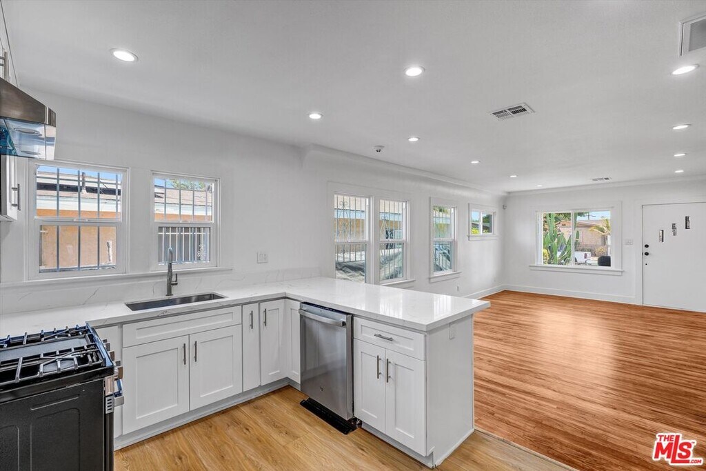 Welcome to the best LEASE in the entire neighborhood at 1413 E 76th Pl, Los Angeles, CA! This lovingly renovated single-family residence offers an exquisite living experience with its thoughtfully designed features and modern upgrades. Spanning 1,008 square feet, this home boasts three spacious bedrooms and two completely remodeled bathrooms, ideal for family living or entertaining guests. Step inside to find stunning hardwood floors that flow seamlessly throughout the main living areas, complemented by elegant tile floors in the bathrooms. The heart of the home is the chef's kitchen, showcasing a total renovation with top-of-the-line appliances, including a gas stove and dishwasher, making it a culinary enthusiast's paradise. The living room features a cozy fireplace, perfect for relaxing on cooler evenings. The home is equipped with central heating and cooling, ensuring comfort year-round. For your convenience, there is an in-home washer and dryer, streamlining your daily routines.Security is a priority, with a security gate and advanced security system installed, providing peace of mind for you and your loved ones. This property combines modern amenities with classic charm, creating an inviting atmosphere that you will love coming home to.Located in a vibrant Los Angeles neighborhood, this residence offers both comfort and style. Don't miss this exceptional opportunity to lease a piece of Los Angeles living at its finest. Schedule a viewing today to experience all that this impressive home has to offer! MLS# 25586729