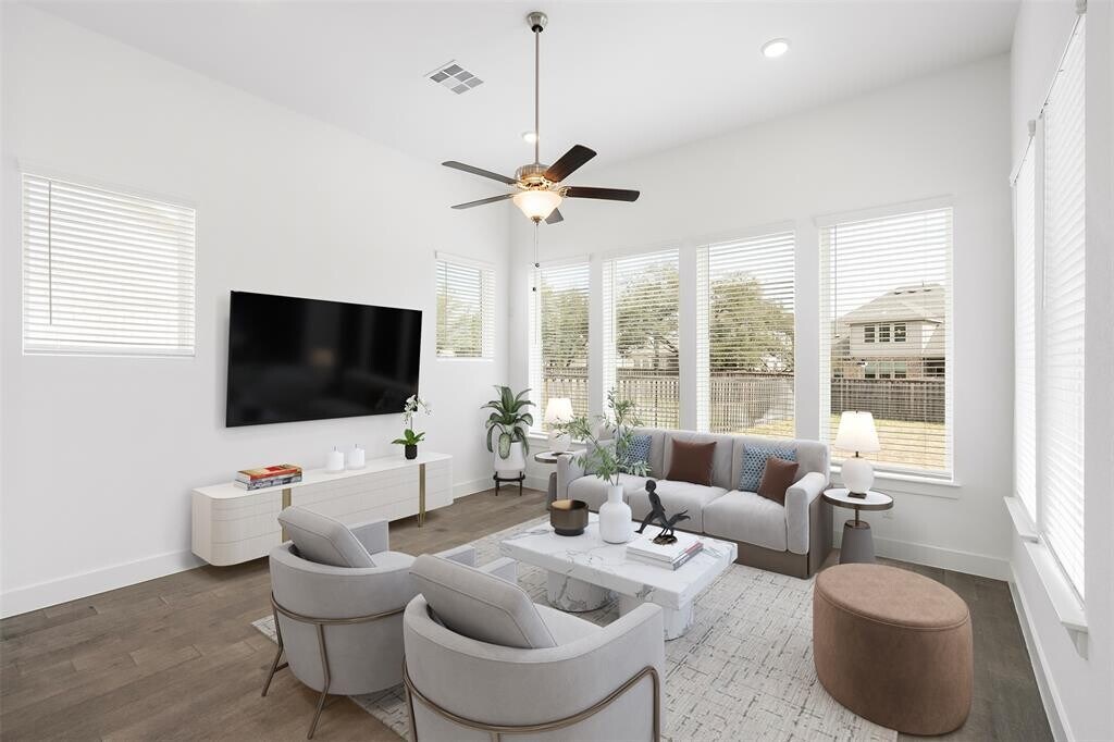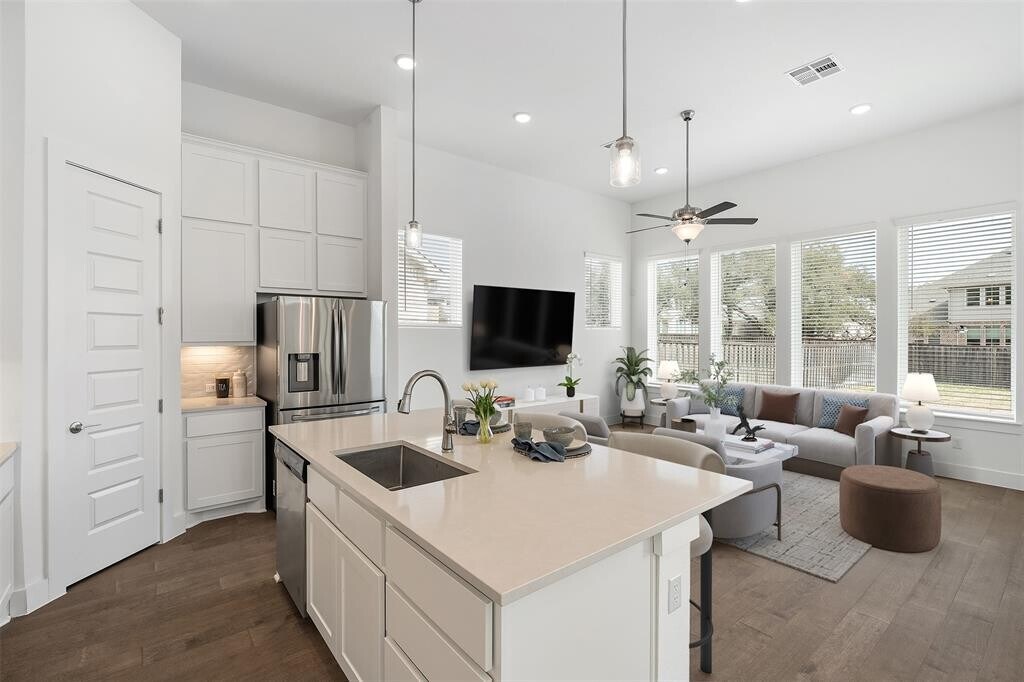 Beautiful home in Parmer Ranch, built in 2022. This light-filled home offers an open layout with high ceilings and a modern kitchen featuring quartz countertops, stainless steel built in appliances, a gas cooktop, and oversized island—perfect for everyday living or entertaining. Tall cabinets add extra storage. Open concept home where entertaining is easy. The primary suite is on the main level with double vanities, a walk-in shower, soaking tub, and a spacious closet open to the utility room making laundry a breeze. There is also a 1/2 bath downstairs and a "Harry Potter" storage closet. Upstairs includes two secondary bedrooms with nice walk-in closet space in each room and a large loft, perfect for a home office, game room, or flex space. Relax on the covered patio and enjoy the privacy of a fenced backyard (only one step down). Community amenities include a clubhouse, pool, fitness center, pickleball courts, parks, and walking trails. Family friendly neighborhood with festivals and planned events. Conveniently located near the new HEB on Ronald Reagan. Min. 12 month lease but you can secure the second year for an additional $100/mo.+ in rent now. Owner pays yearly HOA dues and some yard treatment services. Tenants are responsible for the landscaping/mowing/watering grass at the property during the lease term and will agree to water any trees/landscaping owner puts in. The refrigerator is the Owner's personal property. Repair/replacement of this appliance is not guaranteed but appliance is new. Tenants to provide W/D. Smoking is not permitted at this property including in the garage. Owner will consider up to 2 dogs during a lease term, no cats. Big dogs are welcome to apply. ALL prospective tenants must complete our 3rd pet screening & review processes. Please visit the following website to get started: MLS ID 1560086