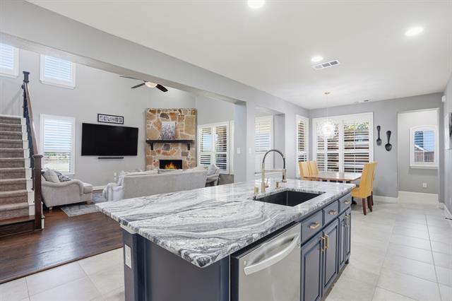 Incredible Creekwood Estate – Saginaw ISD Tremendous Value 5 Bedrooms 4 Full Bathrooms 3-Car Garage Game Room Greenbelt Lot Saginaw Schools Welcome to this spacious and beautifully designed home in the sought-after Creekwood community, offering over 3,300 square feet of living space and located in highly rated Saginaw ISD. Formal dining, breakfast bar and eat in kitchen and lower level main office or study. This versatile floor plan features a first-floor Master Suite with a spa-like bath including a garden tub, walk-in shower, dual vanities, and a customizable walk-in closet. A second downstairs bedroom makes the perfect guest suite, nursery, or 2nd home office. The open-concept layout creates a true Great Room feel, with the living area flowing into the updated kitchen and breakfast nook. The gourmet kitchen includes granite countertops, a gas cooktop, center island, and stainless steel appliances—ideal for both everyday cooking and entertaining. Upstairs, you'll find Bedrooms 3, 4, and 5, along with a massive game room perfect for a playroom, home theater, or second living area. Enjoy your mornings or evenings on the covered back patio with fireplace, overlooking peaceful greenbelt views—ideal for year-round outdoor living. Additional highlights:4 full bathrooms,3-car garage with workspace,Extra-long cul-de-sac driveway Located minutes from shopping, dining, parks, and commuter routes. This home offers tremendous value for the size, layout, and location. Don’t miss your chance to own one of the best floor plans in Creekwood. Trimlight Select lighting & Rachio sprinkler system.
