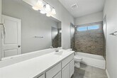 Welcome to your new home! This charming 4-bedroom, 2-bath residence is nestled on a private cul-de-sac lot and features a spacious, fenced-in backyard—perfect for relaxing or entertaining. Enjoy year-round comfort on the covered patio complete with a ceiling fan. Step inside to an inviting living room adorned with beautiful hardwood floors, seamlessly flowing into a large eat-in kitchen. The kitchen boasts granite countertops, a stylish tile backsplash, breakfast bar, recessed lighting, and a full suite of stainless steel appliances—including a refrigerator. A generous walk-in pantry adds to the home's practical appeal. All four bedrooms feature hardwood floors, adding warmth and consistency throughout. The owner’s suite impresses with a trey ceiling and ceiling fan, while the en-suite bath includes double vanities, a garden tub, separate shower and tile flooring. Laundry room boasts a washer & dryer. Don’t miss this move-in ready home that combines comfort, style, and convenience! Pets welcome with prior approval, deposit & pet monthly rent! **Security deposit options: PAY A REFUNDABLE CASH DEPOSIT IN FULL OR PAY A MONTHLY FEE IN LIEU OF CASH DEPOSIT UPON APPROVAL**