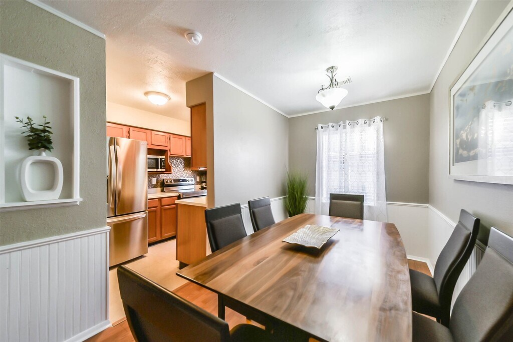 1413 Ramada Drive is a charming two-story townhouse-style apartment located in the peaceful Clear Lake area. This 1,088 sq ft unit features a modern,open-concept design with two bedrooms and 1.5 bathrooms,making it ideal for one to two seeking a cozy living space. The interior boasts fresh renovations and new furnishings throughout. The kitchen is equipped with essential appliances,including a refrigerator,electric cooktop,washer,and dryer. The living room and dining area offer a comfortable setting for relaxation and meals. Upstairs,the primary bedroom measures 15' x 8',while the second bedroom is 13' x 11'. A small private patio provides a tranquil outdoor retreat. Situated in a quiet neighborhood,this home is conveniently located near NASA,Armand Bayou Nature Center,Kemah,Galveston,and Moody Gardens. MLS# 22247081