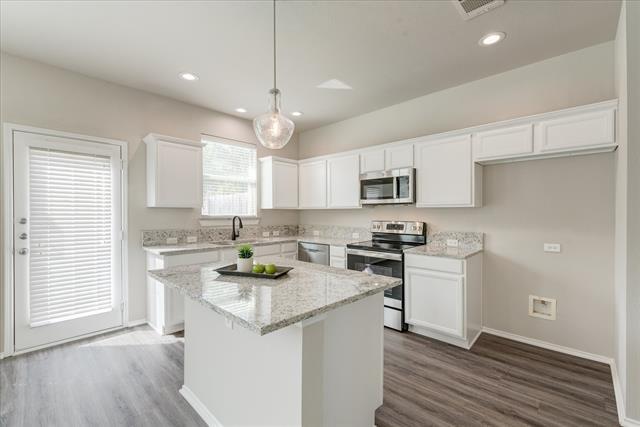 Beautifully remodeled half duplex, located in Mansfield ISD! This 3 bed, 2 and a half bath home features two dining areas, 1 of which could be offered as a great flex space! Half bath located off of the living area for easy access to your future guests. Upstairs you will find all 3 bedrooms, offering full privacy to the first level, entertaining space. With the renovated interior, you can find updated flooring, countertops, appliances, cabinets, and more. Nice backyard with patio and endless opportunities to make the space your own. New roof January of 2023! Located just minutes from shopping, dining, and entertainment, make this perfect location the place you call home today!