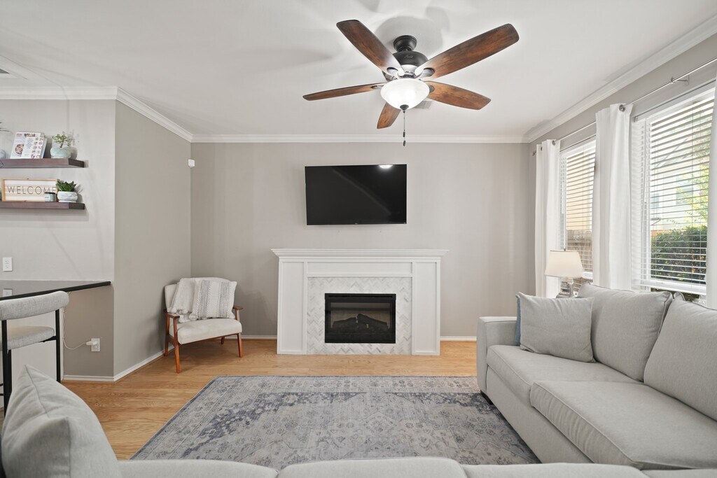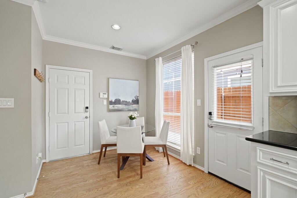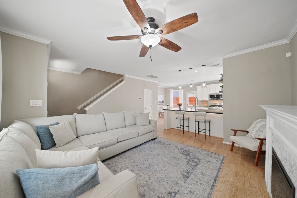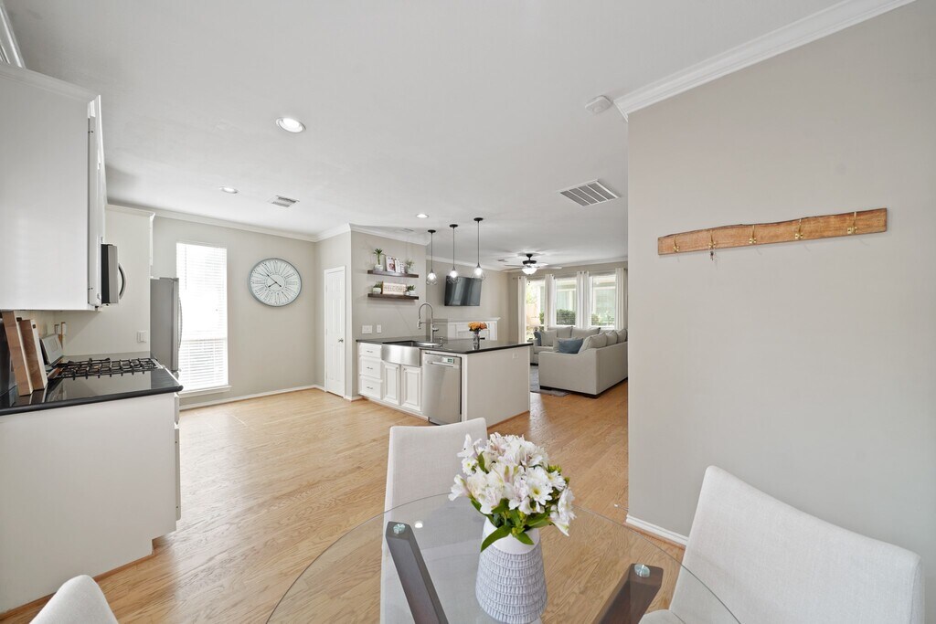 Fabulous free-standing home located in Shady Acres/Heights with first floor living and quick access to major freeways,shopping and dining. This open floor plan features a new roof,refinished hardwoods on first floor,high ceilings,crown moulding,Nest thermostats and a 220v outlet in garage. Family room has electric fireplace with herringbone tile surround,nearby half bath and opens to kitchen/dining with breakfast bar,pendant lighting,granite counters w/tile back splash,S/S appliances,gas range & refrigerator stays. Second floor has game/media room with 120" screen,projector & built-in speakers all included,access to second bath w/washer & dryer and balcony. Primary suite has space for a sitting area and luxurious bath has dual sinks,walk-in shower and oversized closet. Third floor has two bedrooms & bath. Entertain in the fenced backyard (5/24) with stamped concrete,artificial turf,string lights and grilling patio. HOA covers common grounds maintenance,water & trash. MLS# 59932835