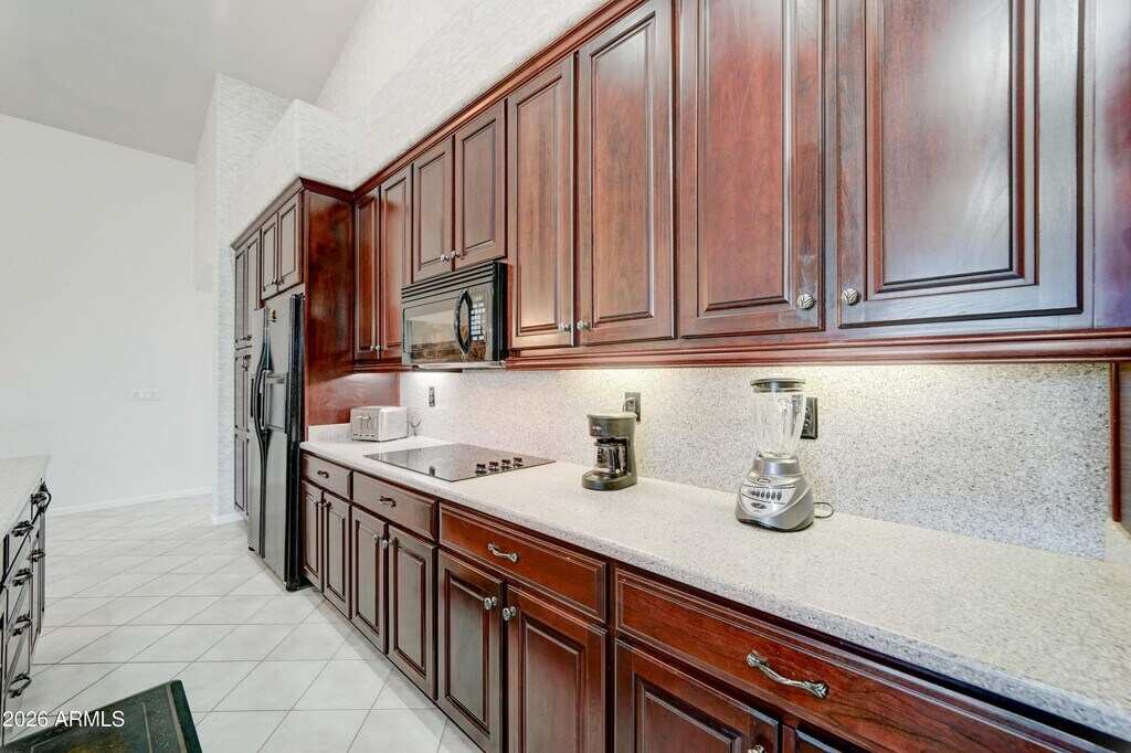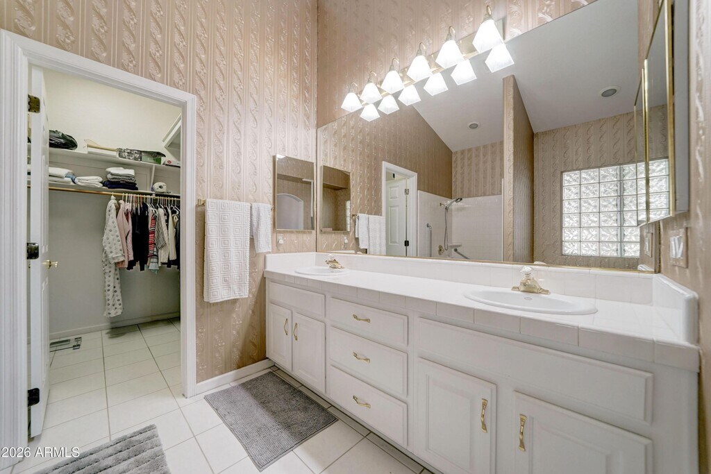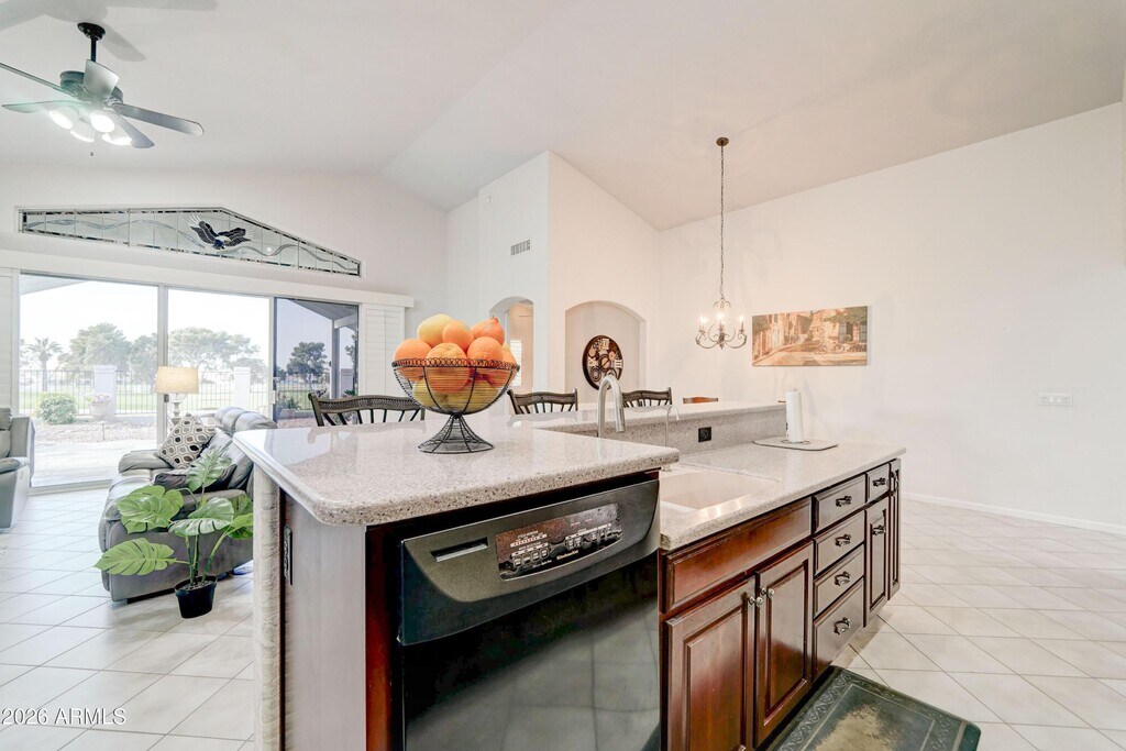 Highly sought after golf course lot nestled along the 9th Fairway of Wigwam. As the sun sets the trees cast stunning shadows across the course! Unique home with split floor plan,elegant formal living area & spacious family room. This home is 3 large bedrooms and 2 full bathrooms. Plantation shutters,decorative built-in shelving & soaring vaulted ceilings. Home has solar and the open concept kitchen is complete with custom cabinetry & large island with breakfast bar seating. Master retreat includes a walk-in closet,private ensuite with dual vanities & separate soaking tub & shower. You will LOVE the outdoor space. Amazing backyard offers a covered patio,pavers & incredible golf course views. Working from home? Office in the family room HUGE storage room in the garage too! MLS ID 6974591