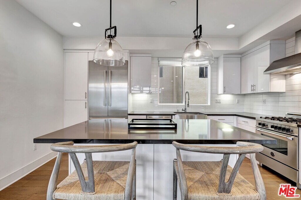 1414 1/2 N Stanley Ave is a modern three-level single family residence with a private rooftop deck capturing panoramic views of the Hollywood Sign, Griffith Observatory, Downtown LA, and beyond. This newer build offers a chef's kitchen with Bertazzoni 36 professional range, Bosch built-in refrigerator and dishwasher, Thermador microwave, and stone countertops, opening to sunlit living spaces with hardwood floors and automatic blinds. The primary suite features blackout shades, spa bath with dual vanities, walk-in closet, and flat-screen TV, while every bedroom enjoys an en-suite bath, including a first-floor guest suite. Additional amenities include laundry on the bedroom level, powder room on the entertaining floor, TVs in both living and primary rooms, whole-home water filtration, and an oversized two-car garage with EV charging. With a 95 Walk Score, this home is steps from Sunset dining, nightlife, Runyon Canyon trails, and West Hollywood hot spots delivering a rare furnished lease that combines style, comfort, and the best of Los Angeles living and can come furnished." MLS# 25600977