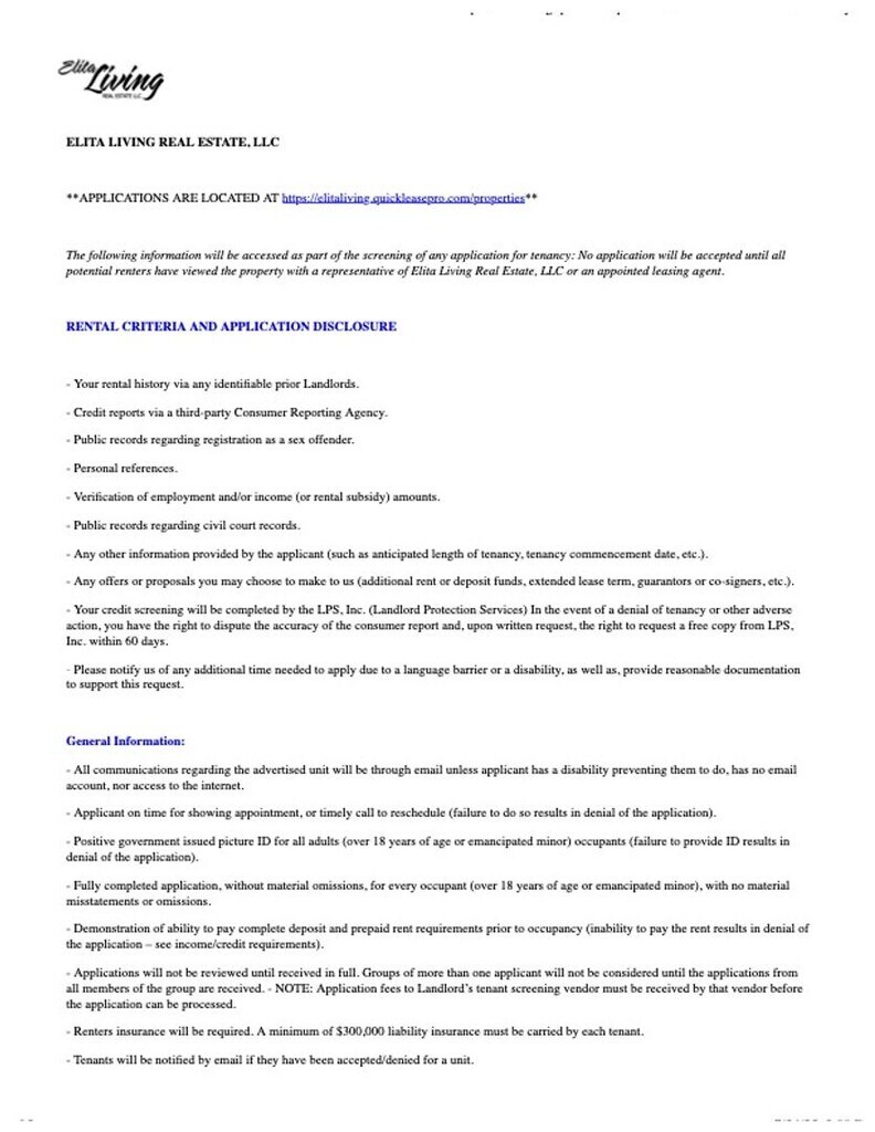 Unit 1 Rent and Fees