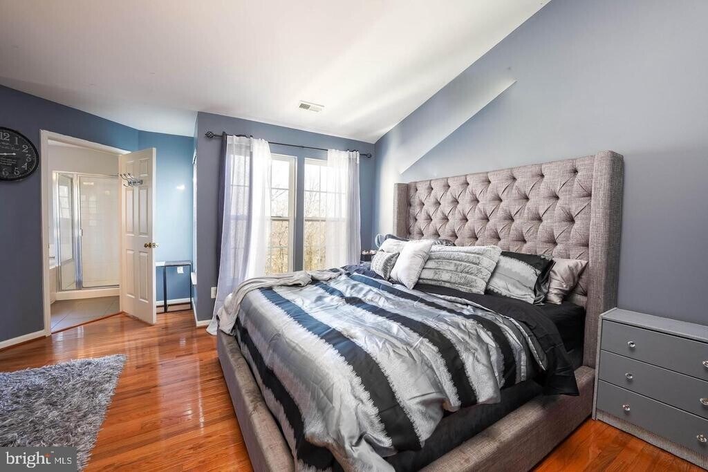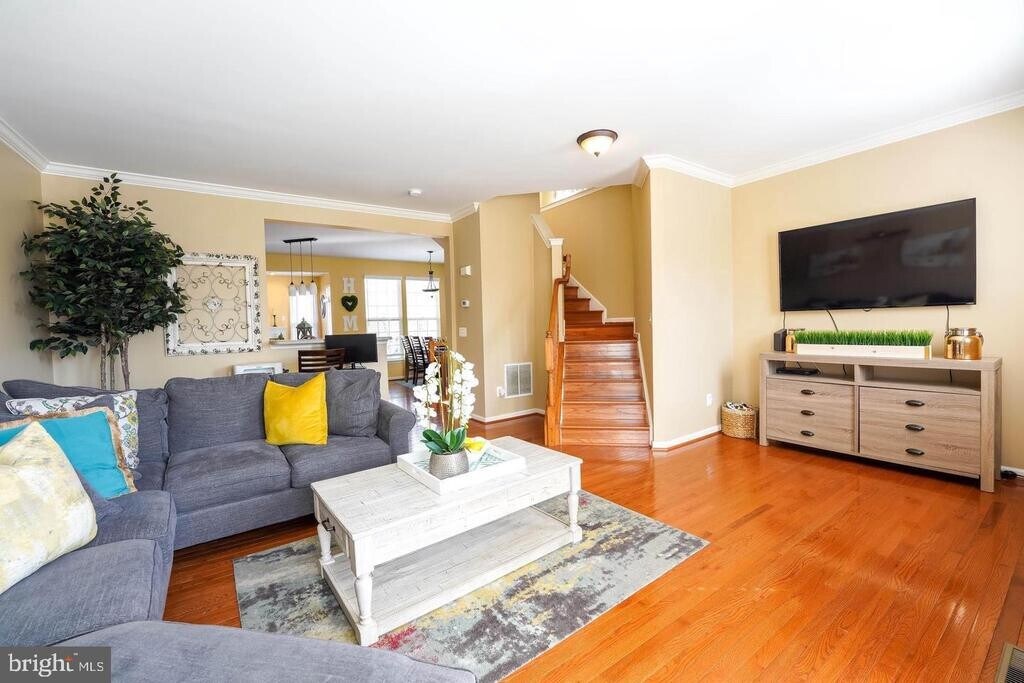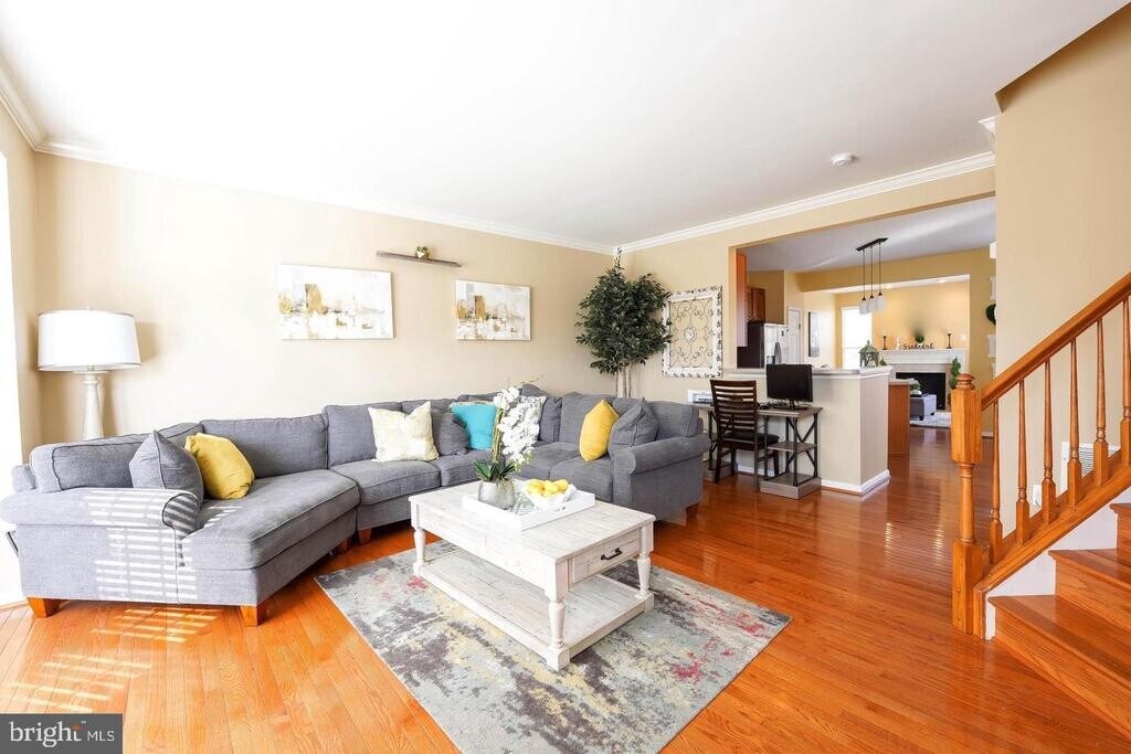 Gorgeous end-unit luxury townhouse located in the sought-after Riverside Station community. Conveniently situated just minutes from Stonebridge, VRE, I-95, Neabsco Creek, and the Potomac River, where you can enjoy seasonal water views from your private deck. This beautifully maintained home features hardwood flooring throughout the main and upper levels. The extended sunroom, complete with a gas fireplace, provides the perfect space to relax and leads directly to the spacious rear deck. The kitchen is equipped with 42-inch cabinetry, a center island, stainless steel appliances, and updated countertops, ideal for everyday living and entertaining. The expansive primary suite offers vaulted ceilings, a walk-in closet, and a luxurious en-suite bath with modern tile work, a soaking tub, separate shower, and dual vanities. The upper level also includes two additional bedrooms, a full bathroom, and a conveniently located laundry room. The lower level features a large recreation room with walkout access to a fully fenced backyard. Additional highlights include a one-car garage and ample guest parking directly in front of the home. Photos are from a previous listing.