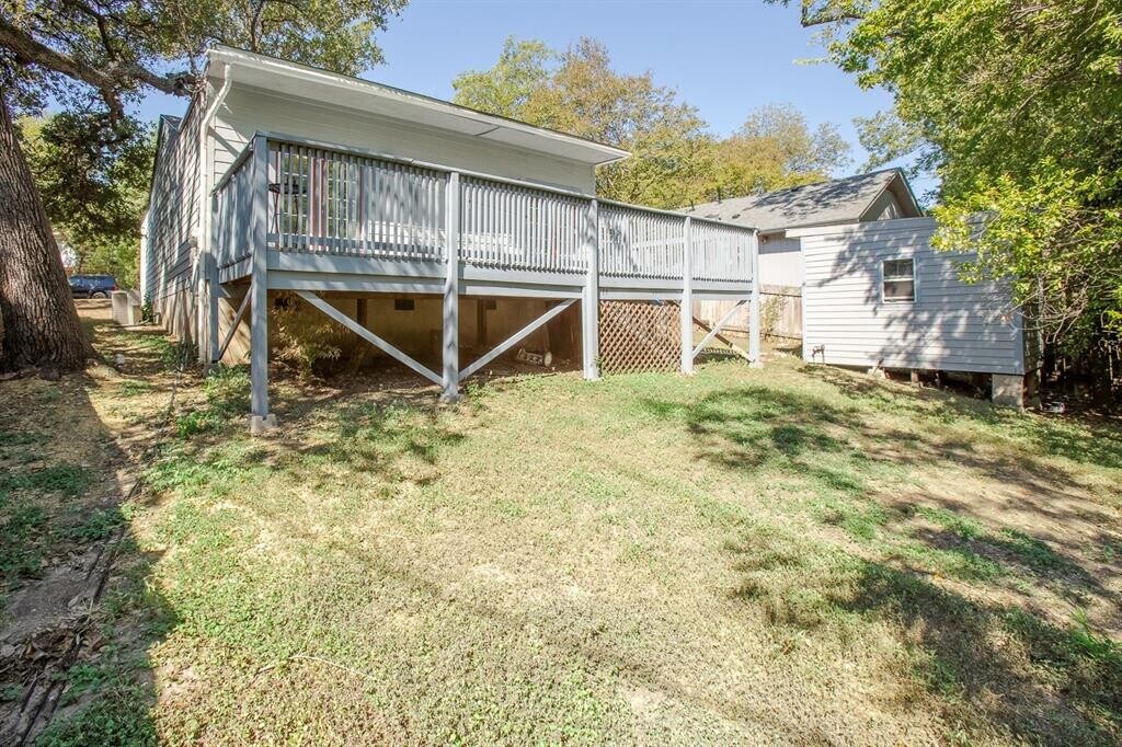 Location is everything. This charming 1940’s 2-bedroom 2-bath 1398 square foot home nestled in the heart of the highly sought after Cherrywood neighborhood is close to Downtown Austin, the University of Texas, and various amenities like Mueller Development featuring shopping, entertainment and numerous nearby restaurants. The neighborhood also offers access to trails like the Boggy Creek, and the Lady Bird Lake Hike-and-Bike Trail, along with parks like Mueller Lake Park. This charmer has original wood flooring throughout, except in 2 bathrooms. You will be amazed at the generous sized spaces found in this home where you will be greeted by a very spacious family room. The dining area and kitchen are also very roomy as well as are the 2 bedrooms. This kitchen has extensive count space with large prep areas, abundant storage and plentiful cabinetry. You will love the bright, well-lit feel of this home. The French doors in dining area and master suite open to an expansive deck that runs the length of the home. Outside you will find a multipurpose outbuilding that has electricity. This home is the description of vintage charm.