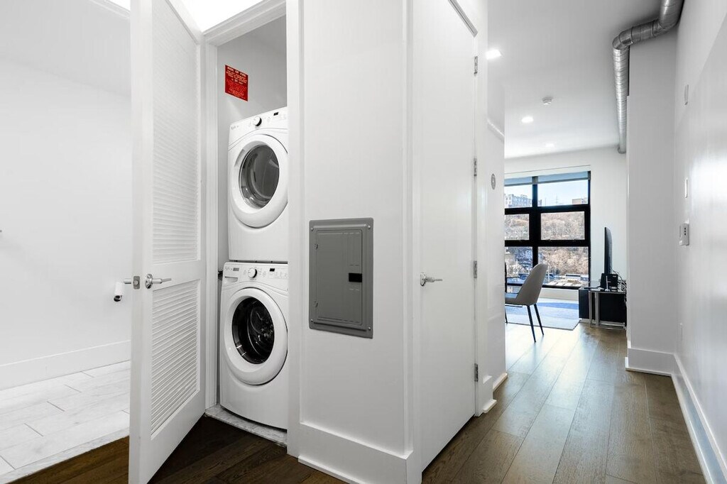 Feel at home in this one-bedroom apartment located in the vibrant community of Hoboken, part of the New York Metro Area. With finished hardwood floors and large windows that allow natural light to flood in, this apartment offers a welcoming atmosphere. The fully equipped kitchen includes a dishwasher, oven, stove, and microwave, making it ideal for any culinary endeavor. The apartment can be found on the third, fourth, fifth, or sixth floor of the building. Designed with your comfort in mind, this apartment features a fully equipped kitchen with modern appliances, including a dishwasher, oven, stove, and microwave. The spacious layout and large windows create a bright and inviting living space. For fitness enthusiasts, there is an on-site Real Hot Yoga studio. The 7th floor features a rooftop terrace offering spectacular views of Hoboken, accessible to all guests in the building. Nestled in the lively community of Hoboken, this apartment offers easy access to the New York Metro Area. Enjoy the convenience of nearby attractions and the vibrant local scene, all within a walkable distance. Smoking is strictly prohibited inside the property and apartments, including all enclosed areas. Any violation of this rule may result in a penalty of up to $500 to cover deep cleaning, deodorizing, and any damage caused. Security cameras operate 24/7 in exterior areas of the building for the safety and peace of mind of all guests. The rooftop is not part of the apartment but is accessible to all guests. The units can be located on the third, fourth, fifth, or sixth floor. A 24-hour check-in is available for your convenience. Please do not move furniture from its current spot inside the apartment, as it can cause damage to the items.