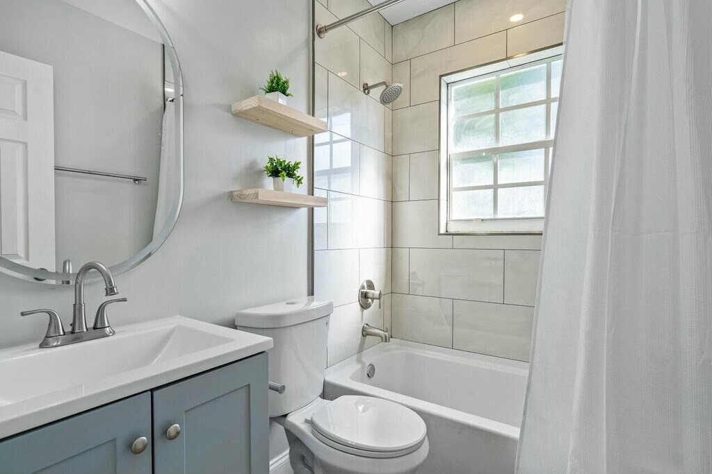 Pest control and landscaping included in the rent! Stunning 2024 Remodeled Home in Lake Osborne Estates! Welcome to this beautifully remodeled (2024) 3-bedroom,2-bathroom,1-car garage single-family home,located in the highly sought-after Lake Osborne Estateswith no HOA! Step inside to an inviting open-concept floor plan,featuring wood-look tile flooring and upgraded baseboards throughout. The expansive living room is bathed in natural light from upgraded windows with stylish treatments,complemented by an upgraded ceiling fan and LED recessed lighting. The fully remodeled chef's kitchen boasts solid wood cabinetry with upgraded hardware,stunning quartz countertops with a waterfall backsplash,a stainless steel farmhouse sink,and brand-new stainless steel appliances,all illuminated by upgraded LED recessed lighting. Adjacent to the kitchen,the formal dining area is highlighted by a modern upgraded light fixture,perfect for hosting dinner parties. Retreat to the spacious master suite,featuring an upgraded ceiling fan,a walk-in closet,and large windows that bring in plenty of natural light. The luxurious master bathroom includes a solid wood vanity with upgraded hardware,an LED bathroom mirror,a modern light fixture,and a beautifully tiled walk-in shower with premium finishes. Both secondary bedrooms are generously sized,each equipped with upgraded ceiling fans,ample closet space,and large windows with upgraded treatments. The remodeled secondary bathroom features a solid wood vanity,upgraded light fixture,and a beautifully tiled shower/tub combo with elegant hardware. Step outside to your oversized,screened-in covered patio the perfect spot for relaxing or entertaining. The huge fenced-in yard provides plenty of space for outdoor activities and grilling out. Don't miss this incredible opportunity to rent a completely updated home in a prime location! Schedule your showing today! MLS ID B26009487