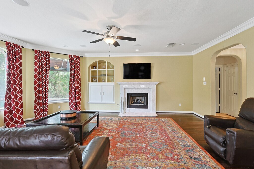 For lease in Meadow Lakes — homes this size are incredibly rare! This spacious 5-bedroom,3.5-bath property sits on one of Sugar Land’s most picturesque,tree-lined streets. Located near the lake,it offers a small-town feel while being just minutes from Whole Foods,Target,and Sugar Land Town Center. Inside,you’ll find a grand staircase,elegant lighting,and a remodeled kitchen that opens to the family room and formal dining. Custom built-ins,surround sound,and large secondary bedrooms with private or Jack-and-Jill baths provide comfort and flexibility. The upstairs game room with dark walls is ideal for a media or playroom. Work-from-home is easy with both a custom office inside and a second climate-controlled office in the garage. Outdoors,enjoy a sparkling pool,extended patio,and lush landscaping. Zoned to top-rated Fort Bend ISD schools,this Sugar Land lease offers both convenience and lifestyle in one of the area’s most desirable neighborhoods. MLS# 66384048
