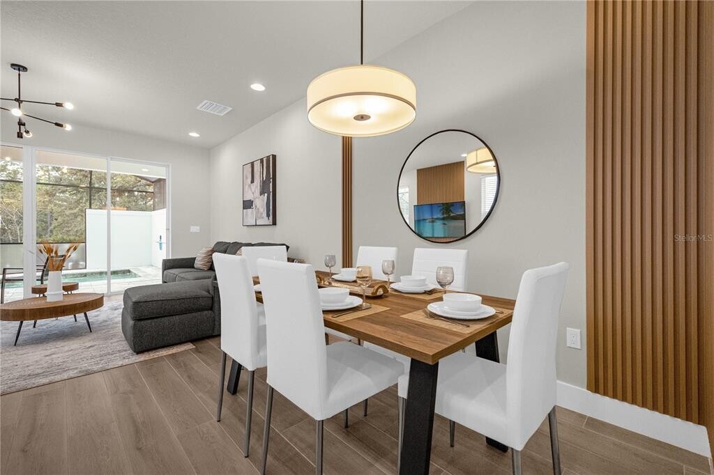 Discover this gorgeous,fully furnished townhouse available for rent in Clermont,Florida,within the desirable Tranquility Townhomes community. This contemporary home offers 4 spacious bedrooms and 3 full bathrooms,featuring central A/C with WiFi control,electric heating,wood-style porcelain tile combined with carpet flooring,and a modern,fully equipped kitchen with high-end Samsung appliances. The home also includes an upstairs master suite with a private bathroom and built-in closet. Enjoy a private heated pool/spa as well as access to the community pool. Rent conveniently includes lawn maintenance,sewer,trash collection,and water. Pets are welcome with a deposit and within certain size limitations. Tranquility Townhomes provides excellent amenities,including a clubhouse,fitness center,and playground,making this an exceptional opportunity to live in a new,stylish,and well-located property in Clermont. MLS# S5138319