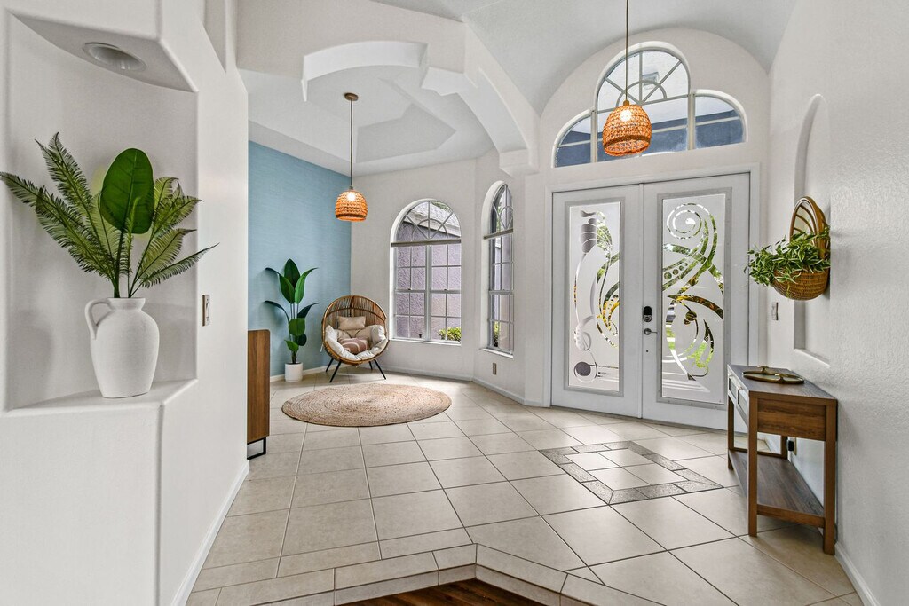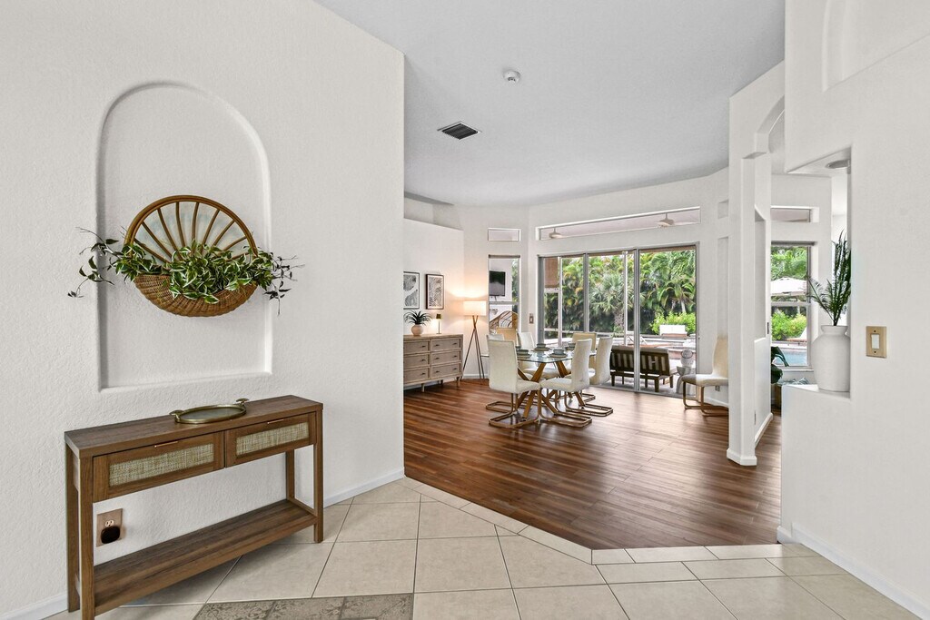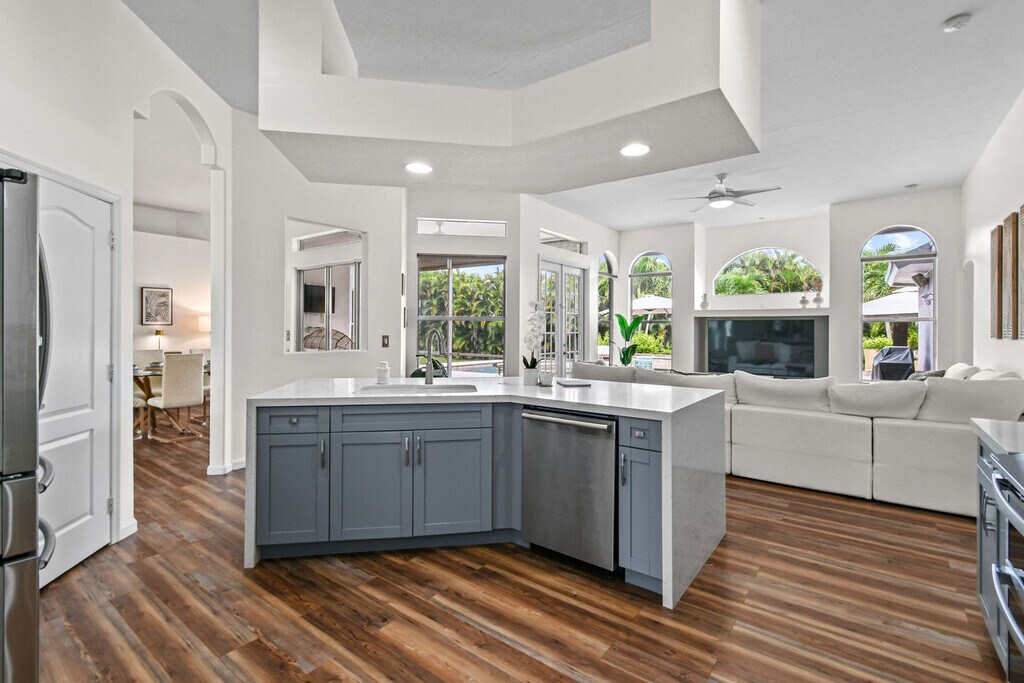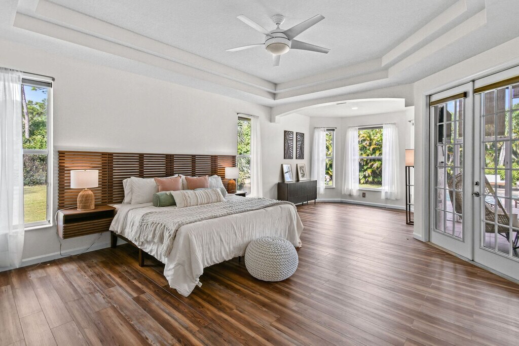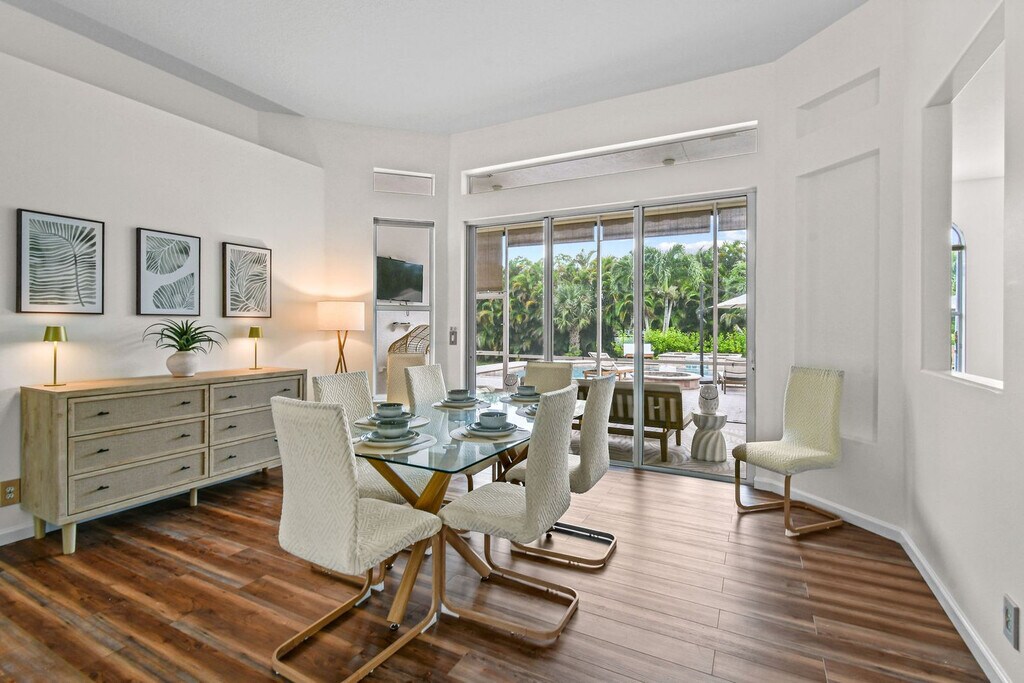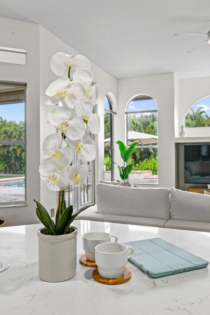 Feel at home in this luxurious 4-bedroom, 3-bathroom home with an office (including a queen pull-out sofa) in Palm Beach County. This tech-savvy oasis sleeps 10 and is situated on a 1.15-acre fenced lot, offering a peaceful retreat with panoramic views. This almost 3,000 sq ft home features a split floor plan, smart home features, a heated pool, an LED-lit waterfall hot tub, a fire pit, a screened Florida room, an oversized gazebo, and a private pond. The recently updated kitchen is fully equipped with new appliances and thoughtful touches. Enjoy the 85" smart TV, ample seating, and charming décor in the expansive living area. The outdoor dining area includes a gas grill and ample seating for al fresco meals. RV parking is available. Located just a 20-minute drive from PGA Boulevard, you'll have access to a variety of restaurants and activities. Additionally, the property is only a 30-minute drive from the area's stunning beaches, offering even more opportunities for adventure and relaxation. There is a minimum age requirement of 27 years old to book the property. Prior authorization is needed for more than 2 visitors at one time who are not listed as guests. Music must be kept low and end by 8 pm outdoors; it should not carry beyond the front gate. Smoking is strictly prohibited inside and will result in a $500 fine if violated. Guests are responsible for cleaning the grill and kitchen oven after each use and before check-out, or a cleaning fee of $150 will be deducted. Unauthorized guests may lead to the immediate cancellation of your reservation without a refund. Outdoor music must be kept low and not extend beyond the property boundary, and no music is allowed outside from 8 pm to 8 am. Disturbances may lead to immediate removal without a refund. Absolutely no confetti or glitter is allowed anywhere on the property, and if found, an additional cleaning fee will be applied. Check-in is between 3 pm and 10 pm only. Security cameras monitor the outdoor perimeter and driveways, and if cameras are tampered with, the property owner reserves the right to visit the property to fix the issue. Beach essentials, including towels, chairs, and umbrellas, as well as a high chair and pack-n-play are available. Registration Number: 000031475, [SI]