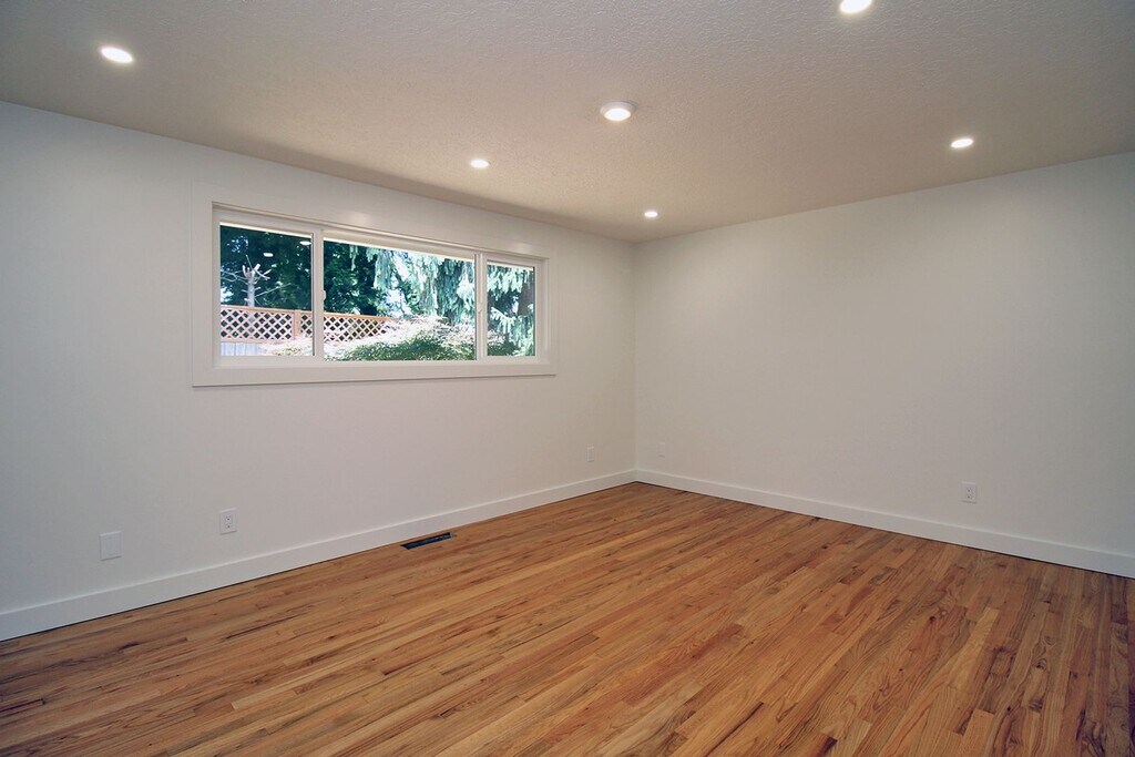 Nothing was overlooked in this recently completed full remodel of this home, with high-end fixtures, finishes and mechanicals. Situated on a quiet street in the Highland Neighborhood, this home is sure to please! Features Include: • 3 spacious Bedrooms • 2.5 Bathrooms • 1828 square feet of living space • Gorgeous refinished hardwood floors thru-out • Large room sizes • New plumbing, electrical, HVAC, lighting, appliances, fixtures and windows • Large Living Room with wood-burning fireplace and slider to back patio • Formal Dining Area • Open Kitchen with quartz counters, custom-tiled backsplashes, high-end appliances and breakfast bar open to Living Room • Large Family Room on the other side of the Kitchen with 2nd fireplace and slider to side patio • Primary Bedroom is en-suite with step-in shower and large closet • Laundry room with washer/dryer (not under warranty for repair) • Convenient half-bath • Attached 2 car garage • Monthly landscaping included • Fantastic location, close to shopping, restaurants, Nike Camps and withing walking distance to Fir Grove Elementary and Highland Park Middle School. • Don’t miss this one – it’s gorgeous! --Renter's Insurance Required-- ** Note: This home is not ADA compliant. - No Pets Preferred