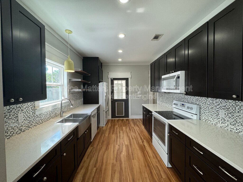 Here's a great find just as we enter into the summer. This beautifully done, 3 bedroom home is located in the heart of Pensacola within easy reach of local shopping and restaurant opportunities plus you're only minutes from the Cordova area or downtown. The home offers plenty of parking with street side and driveway parking available, plus a garage at the back of the property is perfect for small vehicles. Through the front door you'll discover a generously sized living room with plenty of windows bringing natural light into the space. A small hallway offers access to the guest rooms and guest bathroom. Beyond, you'll find the large dining space with a stylish light fixture that serves as a great focal point for the room. A galley style kitchen offers plenty of counter space for preparing meals with a full suite of appliances. The laundry is located just off the kitchen. And so is the spacious owner's suite with double closets. The adjoining bathroom includes dual vanities and a large, walk-in shower with glass and tile surround. A screened patio offers a great space to enjoy the mornings, and the privacy fence surround backyard is a great spot for relaxing during the weekends. AMENITIES: * fenced yard * Central A/C * Attached garage * Central Heat By submitting your information on this page you consent to being contacted by the Property Manager and RentEngine via SMS, phone, or email.