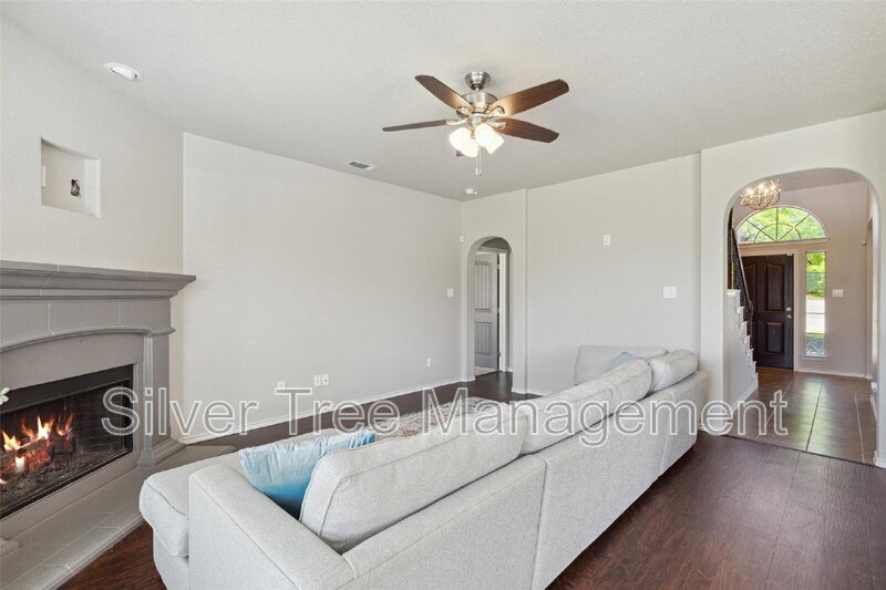 Save upfront costs—ask about our NO security deposit for qualified applicants! Welcome home to a space where comfort, style, and everyday convenience blend seamlessly. From the moment you enter, you’ll notice the high ceilings, an elegant hardwood staircase, soft neutral paint tones, and arched doorways that create a warm, open feel throughout the home. The kitchen serves as the heart of the home, offering granite countertops, a breakfast bar, tumbled stone backsplash, durable tile flooring, and stainless steel appliances, including a refrigerator. The adjoining breakfast area is perfect for casual meals, while the formal dining room near the entry is ideal for hosting friends and family. The spacious living room offers plenty of natural light and overlooks the backyard, with a cast stone fireplace that adds both charm and comfort. The primary suite is generously sized and offers a peaceful retreat, complete with a private bath featuring dual vanities, a garden tub, a separate shower, and a walk-in closet. Upstairs, a large game room offers versatile space for entertainment, hobbies, or a home office. Secondary bedrooms are nicely sized, and the guest bathroom includes dual sinks for added convenience. Step outside to enjoy the covered patio and oversized backyard—perfect for relaxing evenings. Residents also enjoy access to community amenities, including a swimming pool, playground, and park. This beautiful home is ideally located and ready for you to enjoy from day one. Pet Details: No more than 1 pet with a monthly $45 pet fee. Pets must be under 35 lbs. All applicants must complete a pet application through . No aggressive breeds.